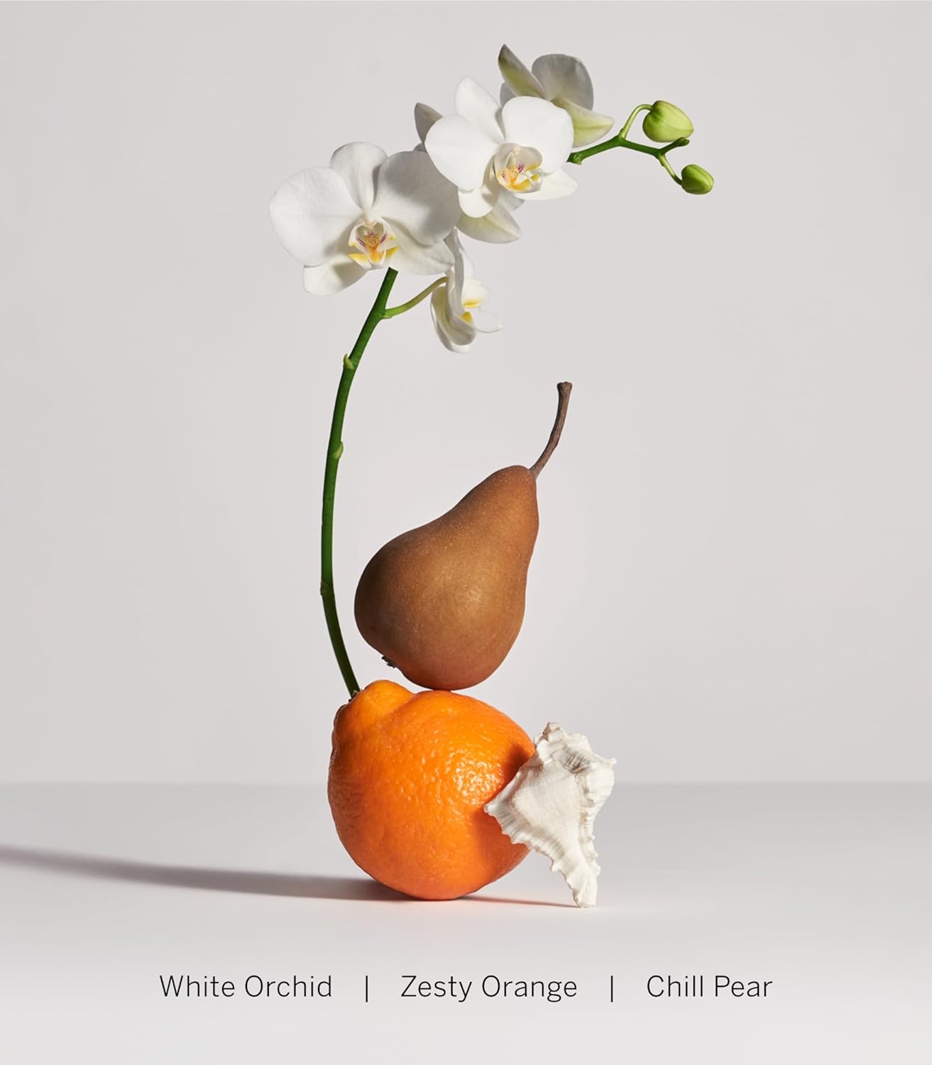 - A scent blend to inspire living on the bright side. Sparkling. Bright. Serene. With notes of Chill Pear, White Orchid and Zesty Orange.
