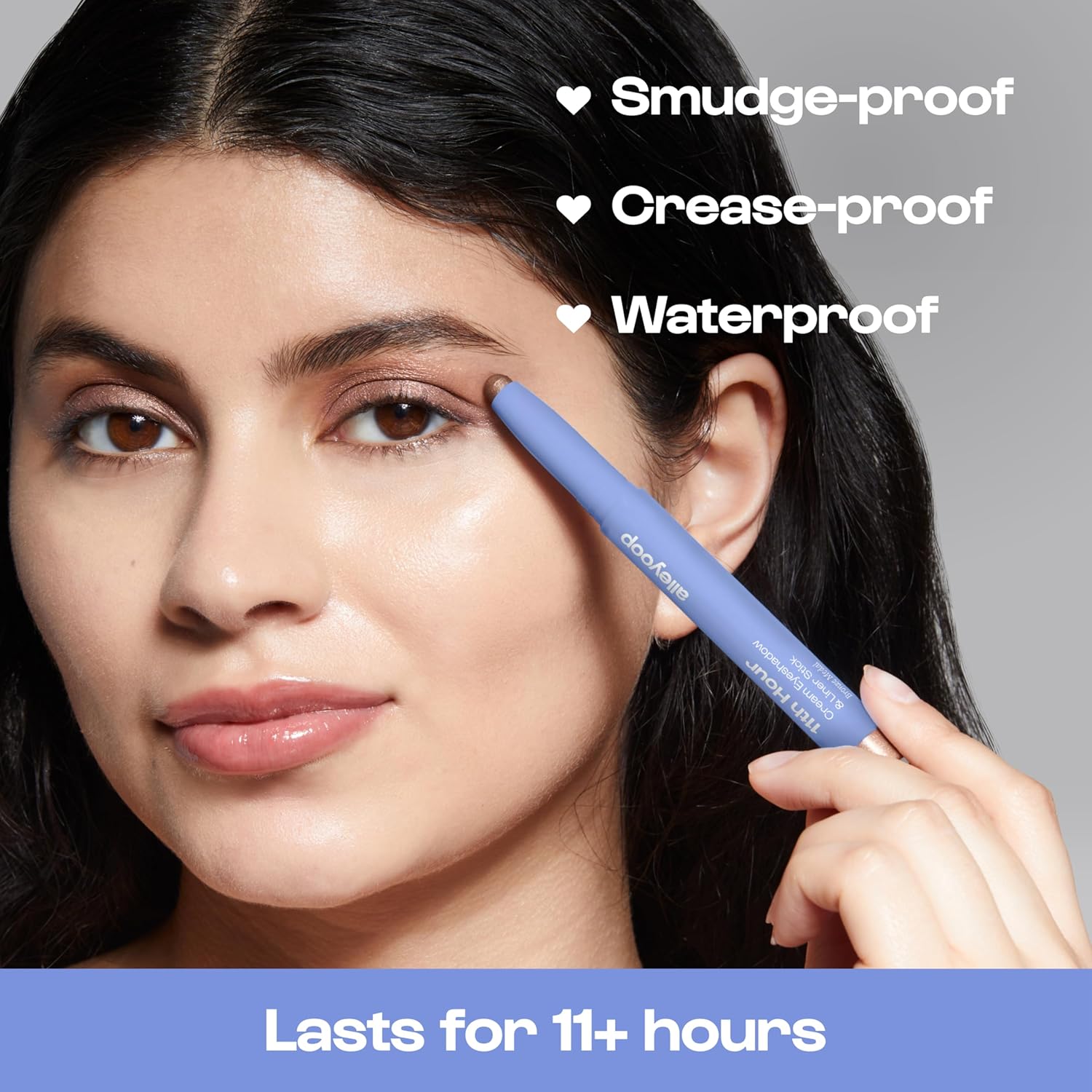- HIGHLY PIGMENTED & EASY TO BLEND: Glide on buildable, high-pigment color in matte or shimmer shades for all-day wear. Blends effortlessly with fingers or a brush! This waterproof cream eyeshadow stick glides on smoothly for quick touch-ups and long wear.