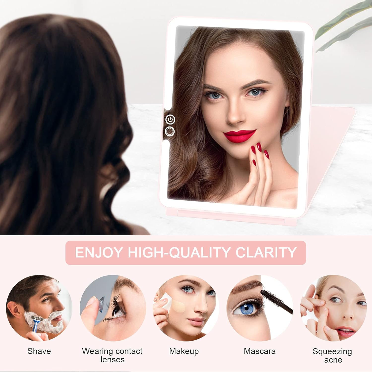 deweisn Folding Travel Mirror Lighted Makeup Mirror with 72 LEDs 3 Colors Light Modes, USB Rechargable, Portable, Ultra Thin, CompactVanity Mirror with Touch Screen Dimming for Cosmetic (Pink)