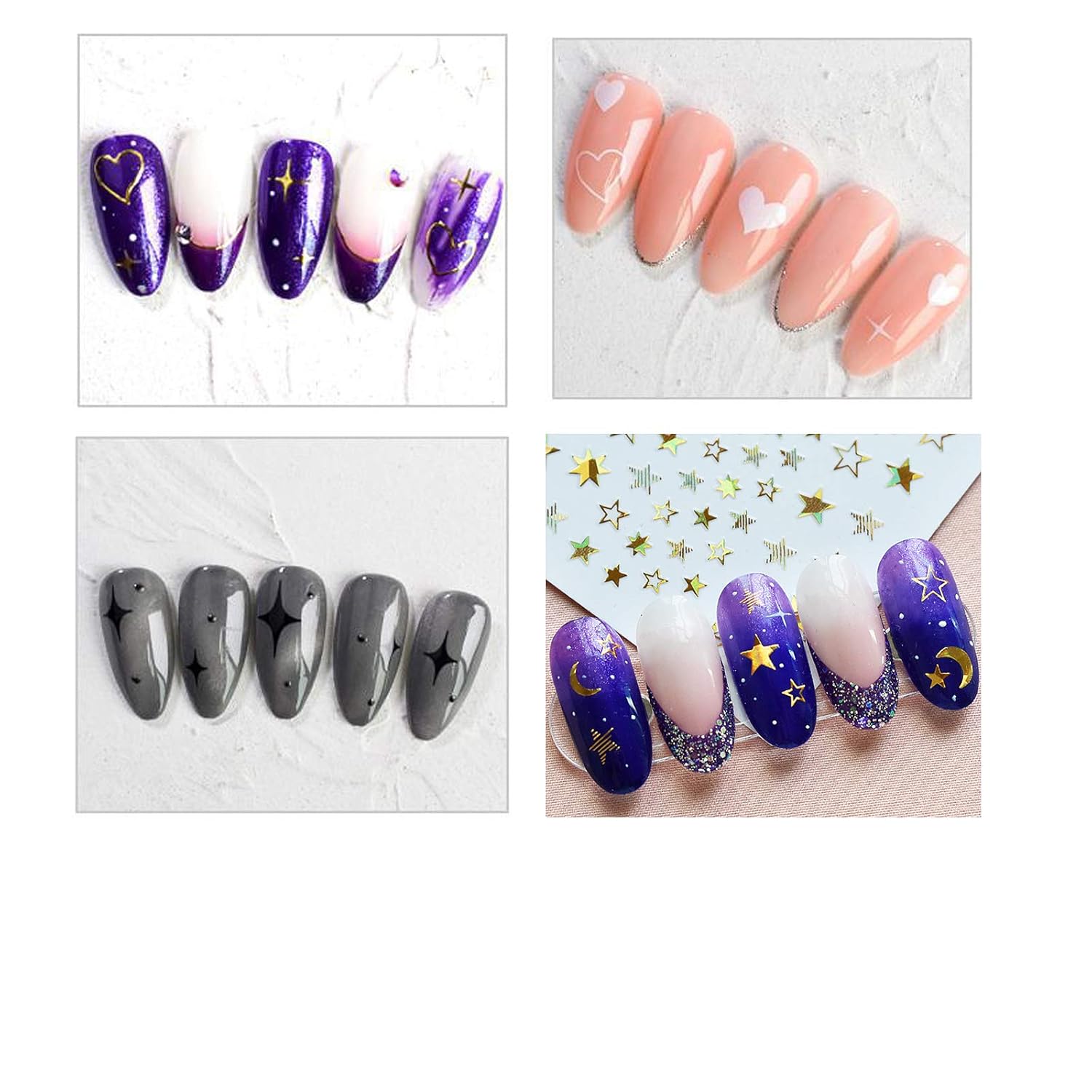 - There are two kinds of star designs and two kinds of star designs. Each design has 4 different colors - black, white, laser gold and laser silver. Besides, there is also a sheet of red heart nail stickers. Perfect for women to DIY their own nail styles as they like.