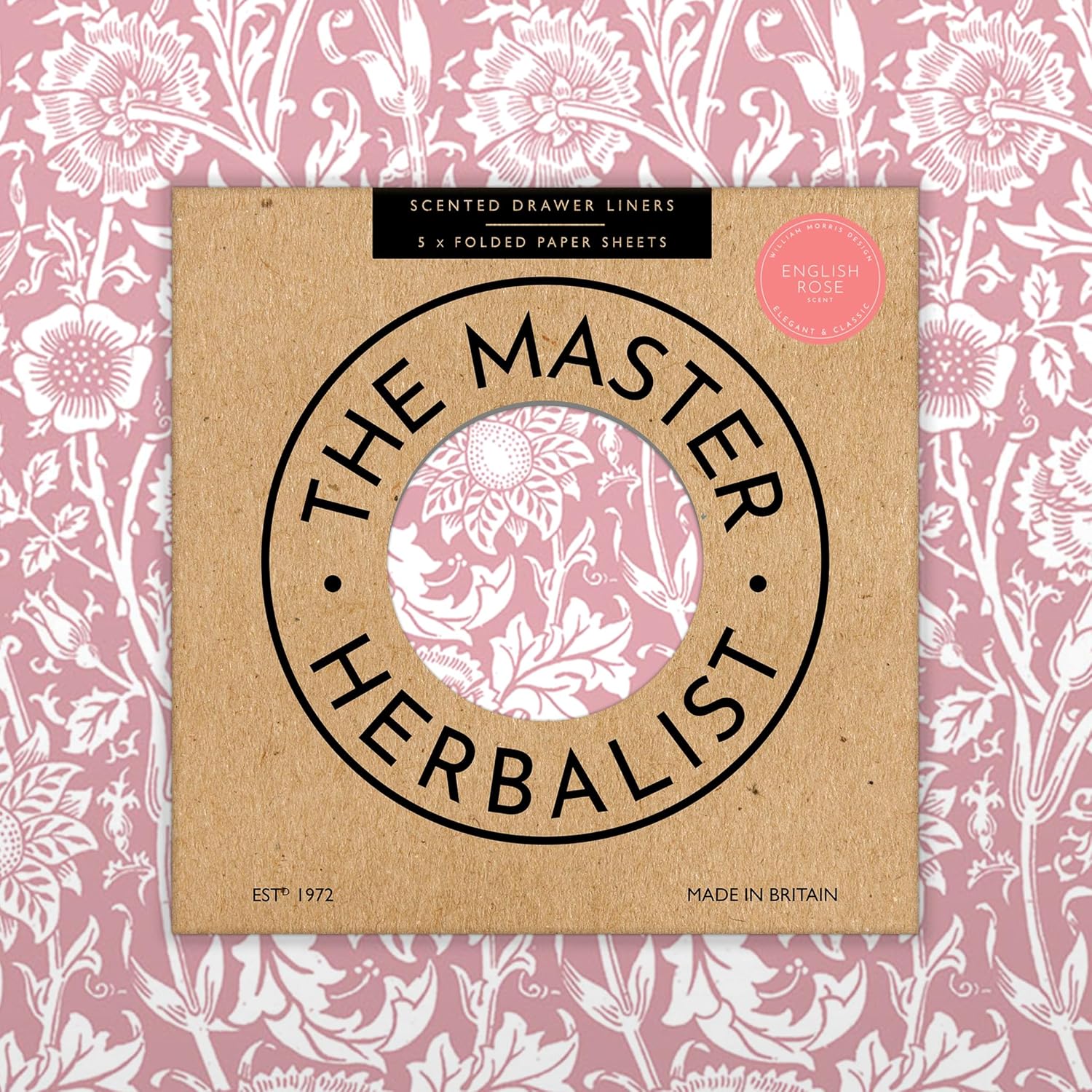 - NEW & IMPROVED FRAGRANCE Formulations: ROSE Scented Drawer Liners with Essential Oils in a PINK William Morris Design. Gift Box of 5 large paper sheets (FOLDED) Vegan Friendly, Allergen Free. Made in the UK