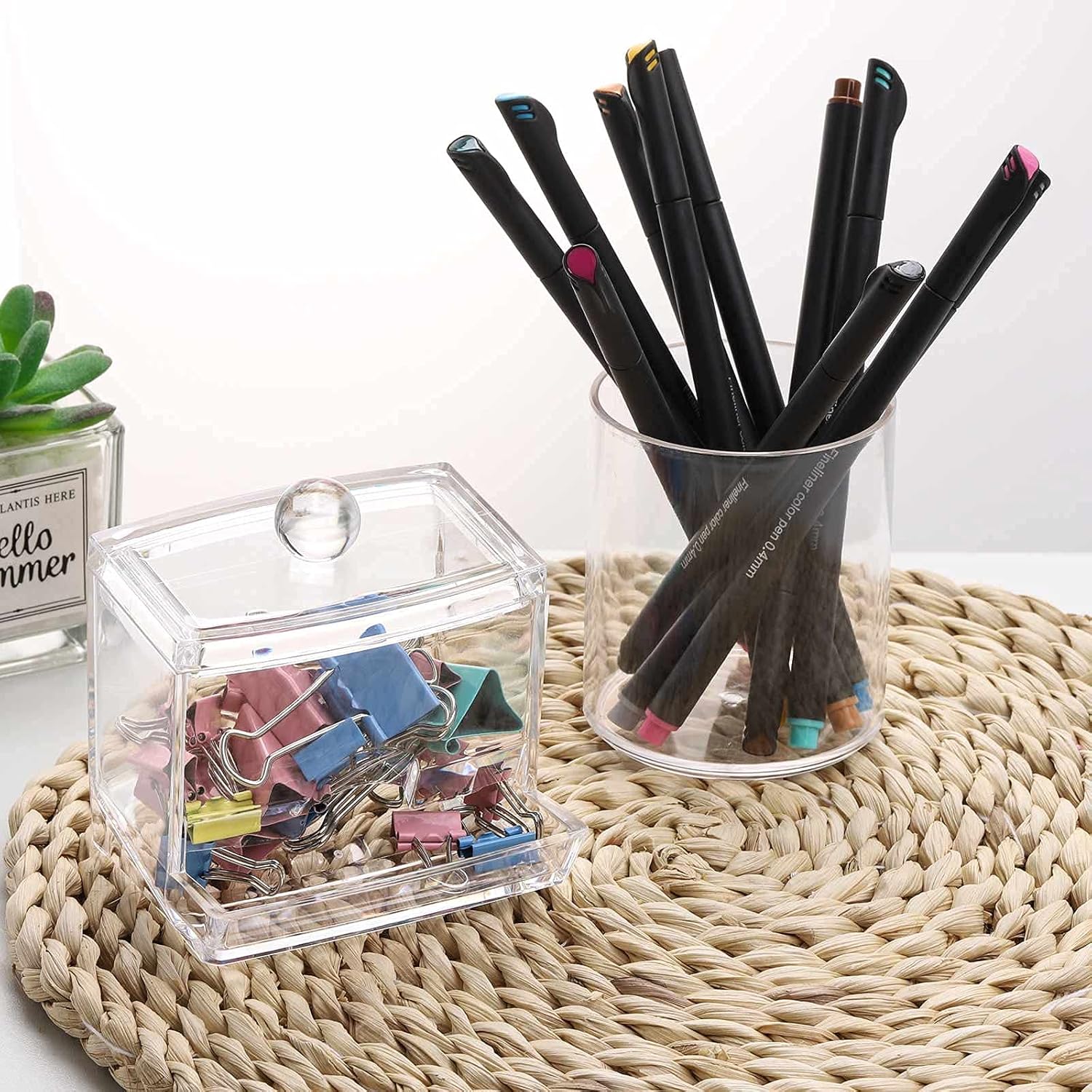 Tbestmax Plastic Qtips Holder Bathroom Container, 10/7 OZ Cotton Ball/Swabs Dispenser, Apothecary Jar Organizer for Storage 3 Pcs