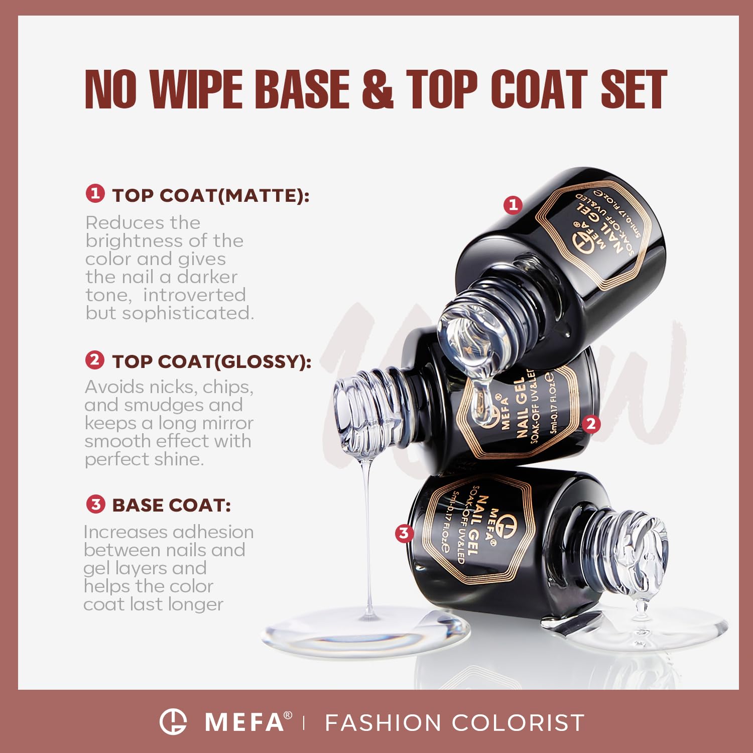 - Long Lasting 28 Days+: The Christmas nail polish easy to apply, you can get salon nail art in 3 minutes. The gel polish application is smooth, bubble-free. It takes 60-90s to cure under the MEFA nail lamp, you can achieve 28 days of color stay perfect