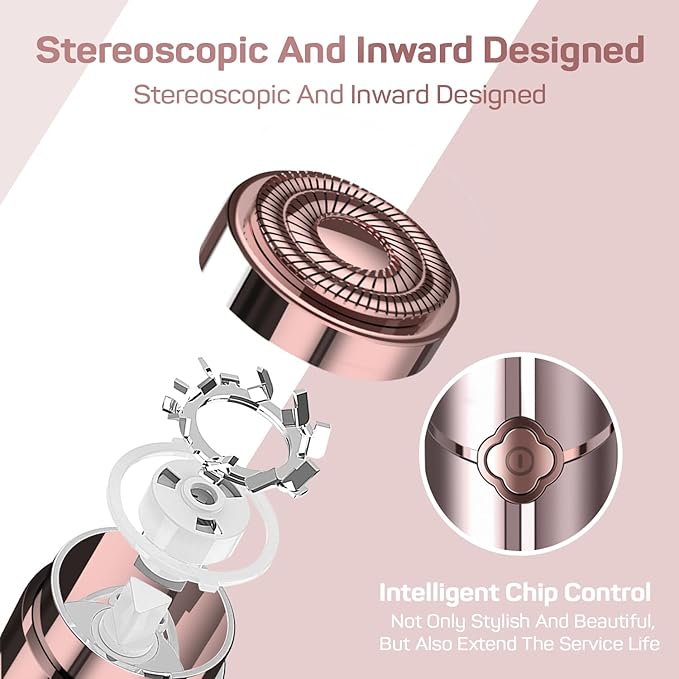- Dual Ring Blade Design: The women facial hair removal device has horizontal cutting head with advanced double ring blade expands the contact area for instant and thorough trimming of unwanted hair on fingers, cheeks, chin, upper lip and arms.