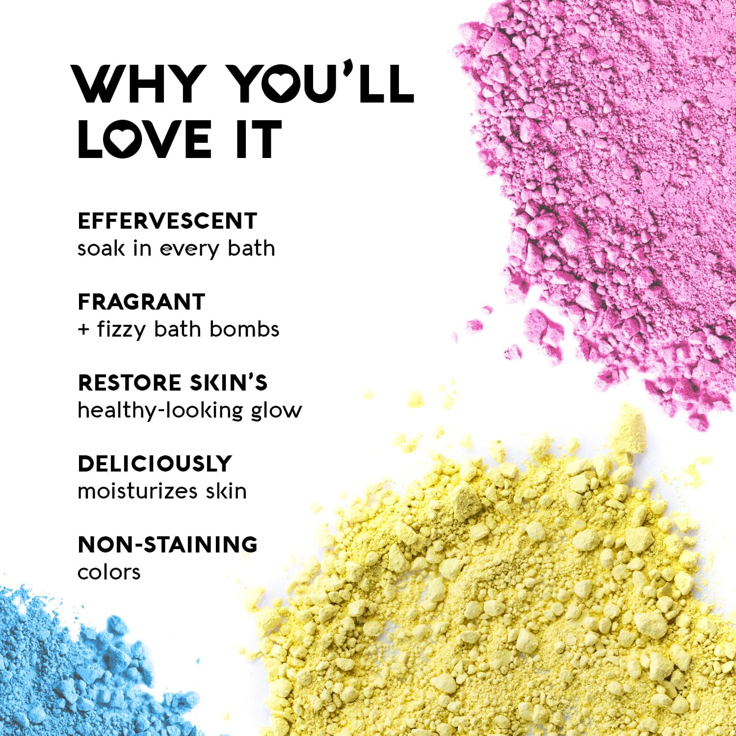- Playful Escape: Fizzing bath bombs transform your tub into a vibrant, rainbow-filled soak