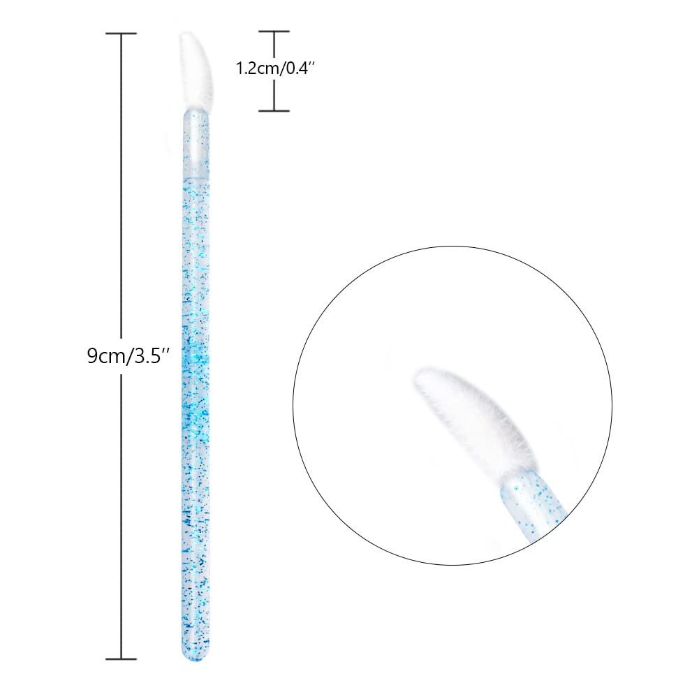 - Package & Size: 100PCS disposable lip brushes, enough quantity for you to use and change. The lip wands are 3.54''/9cm long, the cotton brush head is 0.47''/1.2cm, easily suited for your daily needs and perfect for lip gloss or lipstick