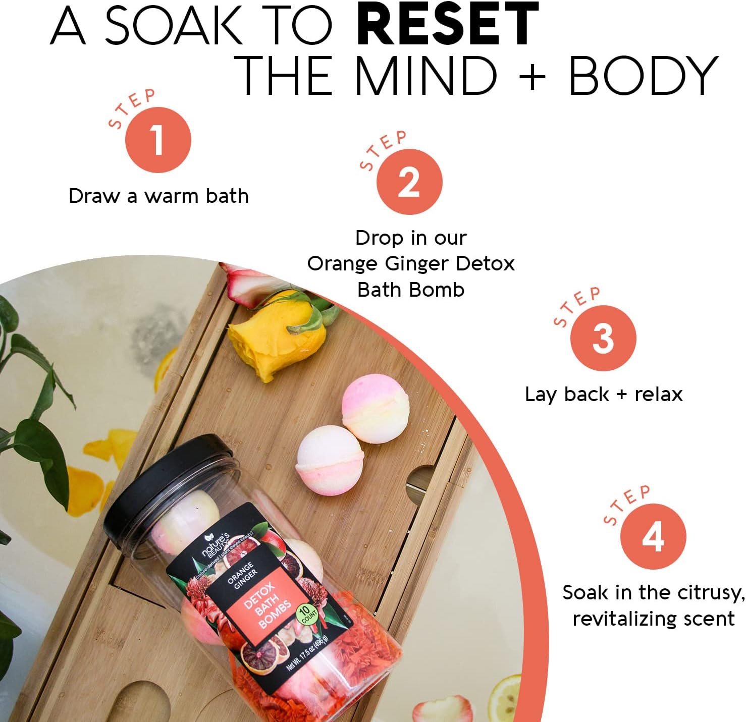 - Detox Soak Experience: Effervescent bath bombs help reset the mind and body with a refreshing soak