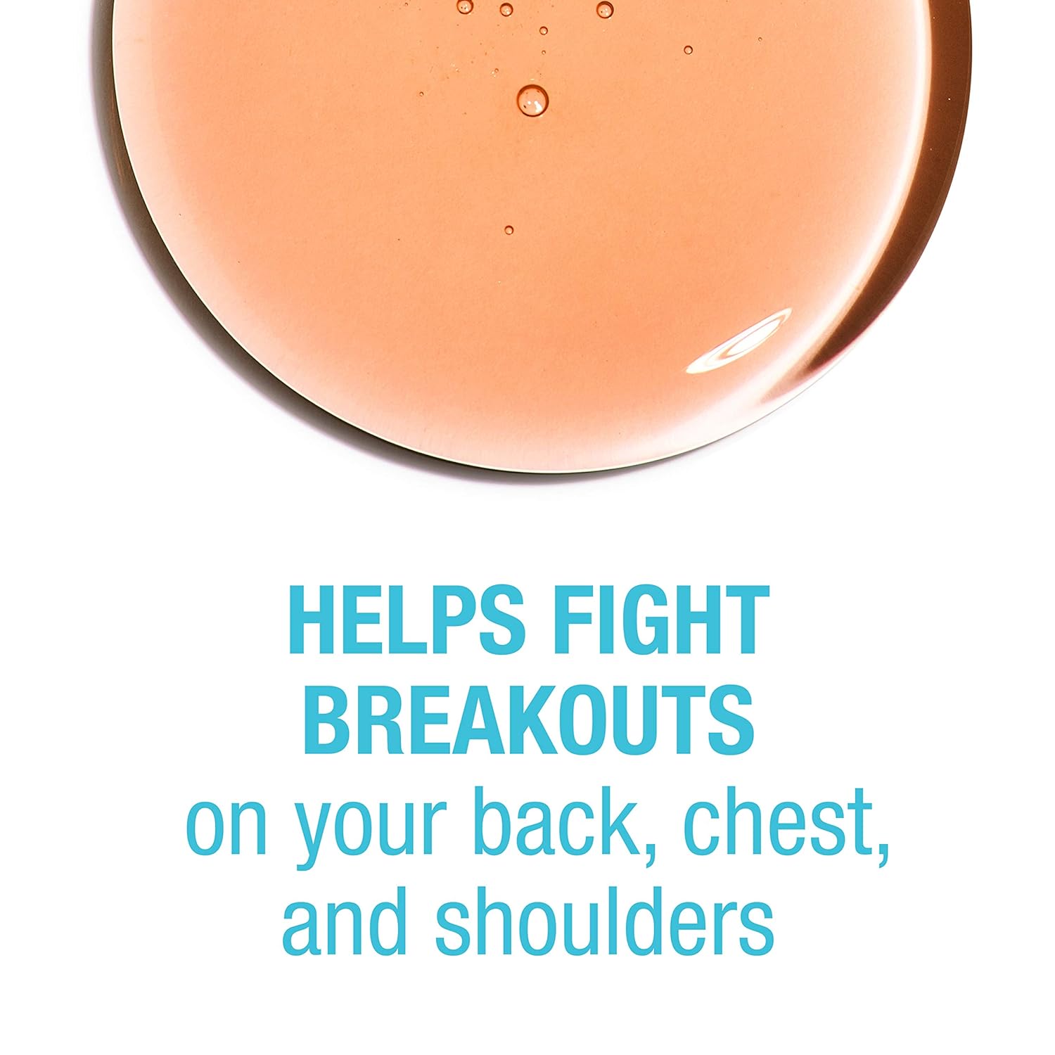 - Acne body wash: 2% salicylic acid body wash targets breakouts on back, chest, and shoulders; oil-free, non-comedogenic formula helps treat and prevent acne for visibly clearer skin with daily use in the shower.