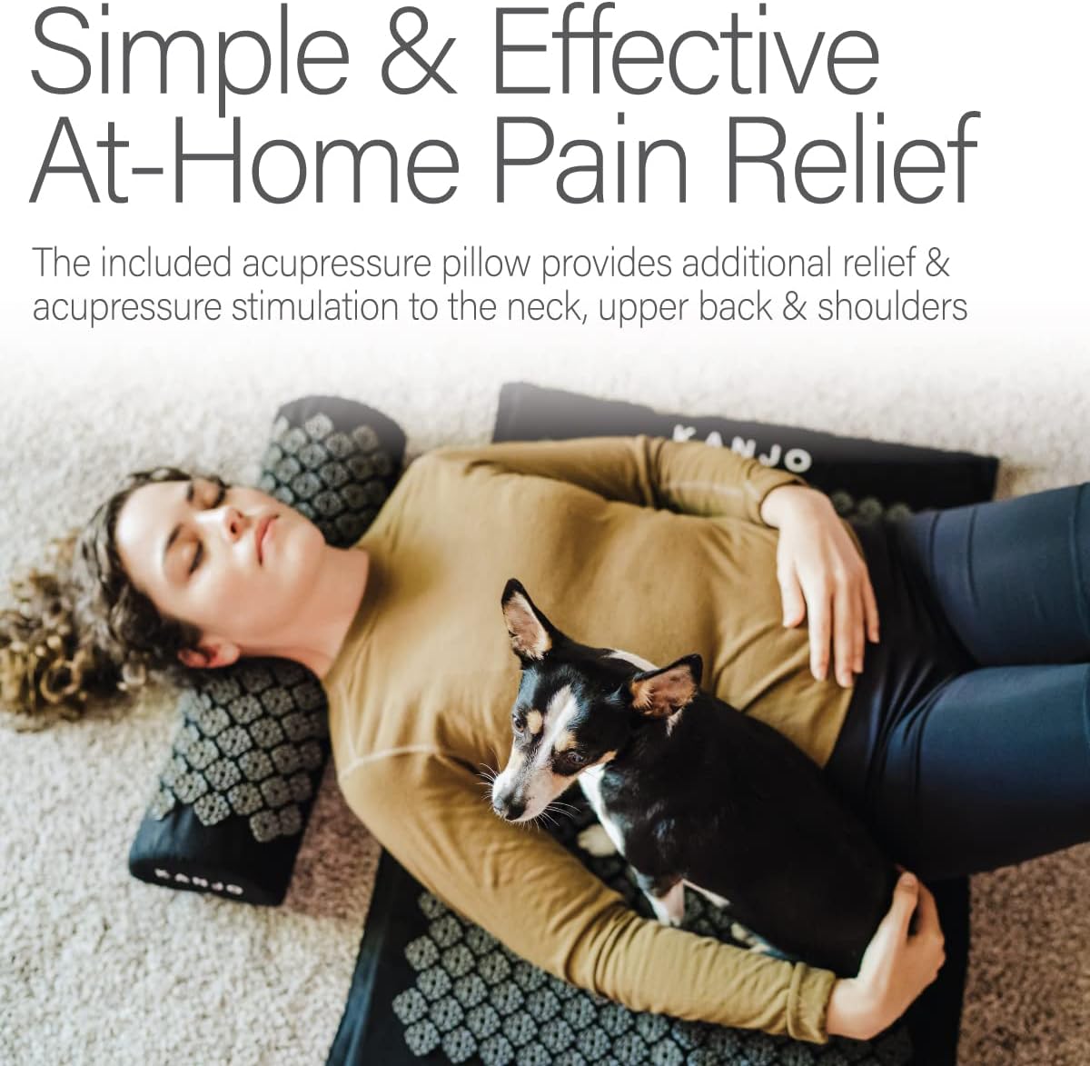 - Special Feature : Kanjo FSA HSA Eligible Premium Large Acupressure Mat and Pillow Set for Back Pain Relief & Neck Pain Relief, with Memory Foam Pillow, Includes Carry Bag, Black XL Kanjo FSA HSA Eligible Premium Large Acupressure Mat and Pillow Set for Back Pain Relief & Neck Pain Relief, with Memor… See more