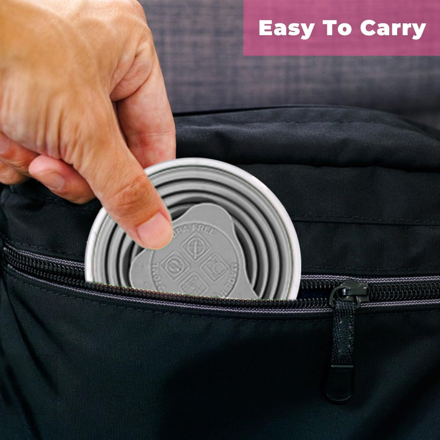 Silicone Collapsible Cup,Collapsible Cups for Camping,Folding Cup with Lids,Collapsible Coffee Cup,Reusable Drinking Mugs Cup(Grey)