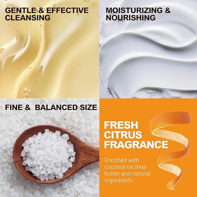 - Gift Baskets for Men: Includes face wash, bubble bath, shower gel, bath salt, body lotion, pumice stone, loofah, and soap. All enriched with citrus essence to cleanse, exfoliate, and hydrate your skin, leaving it radiant and smooth.