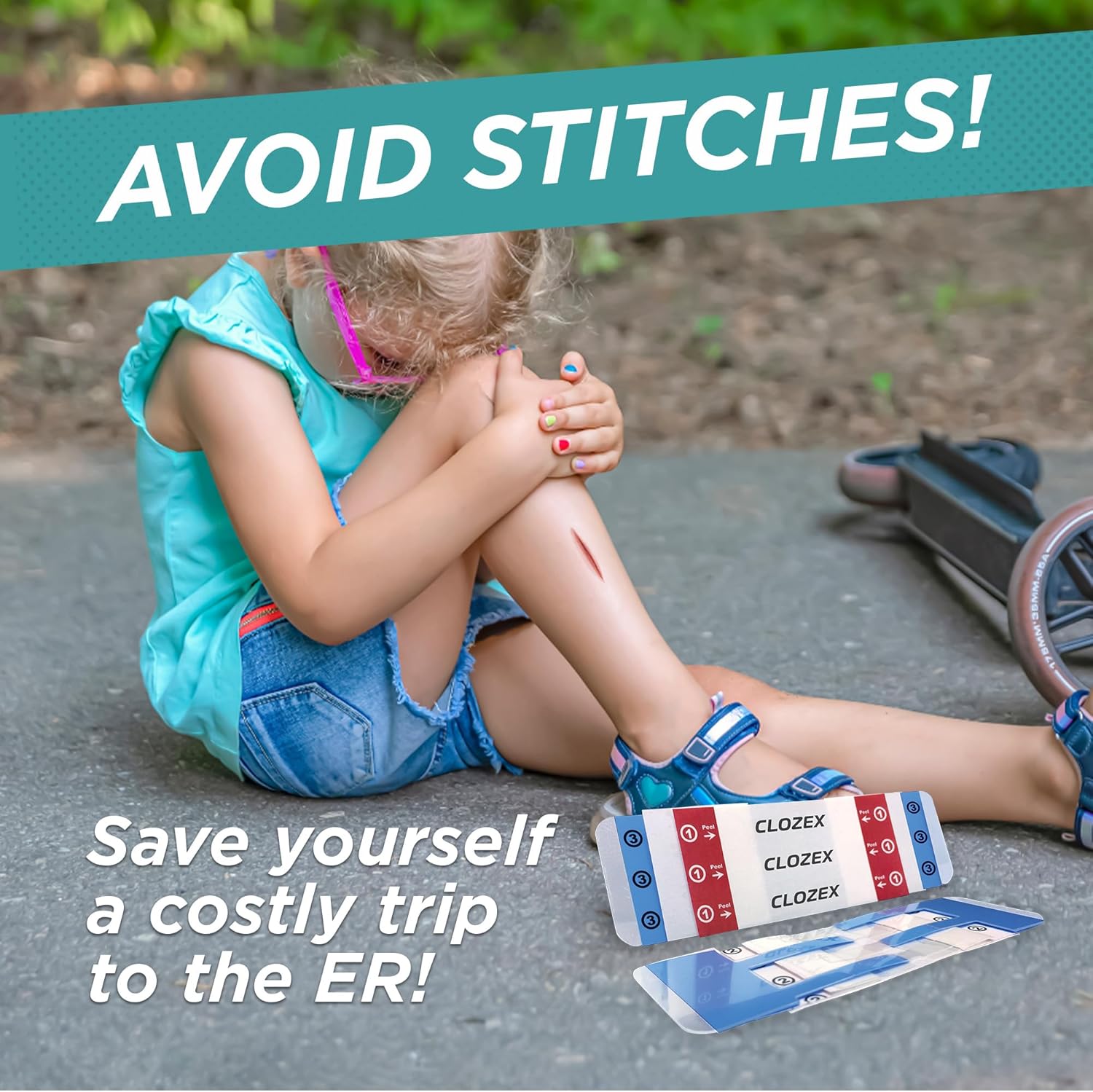 - Be prepared for life’s unexpected moments: Accidents can happen anywhere, any time. Clozex Closures provide a non-invasive and painless alternative to traditional stitches for treating small cuts and lacerations. Whether you’re at home, work, engaging in sports, or enjoying outdoor activities like hiking, camping, fishing, hunting, or biking, our closures ensure you’re always ready to address minor injuries