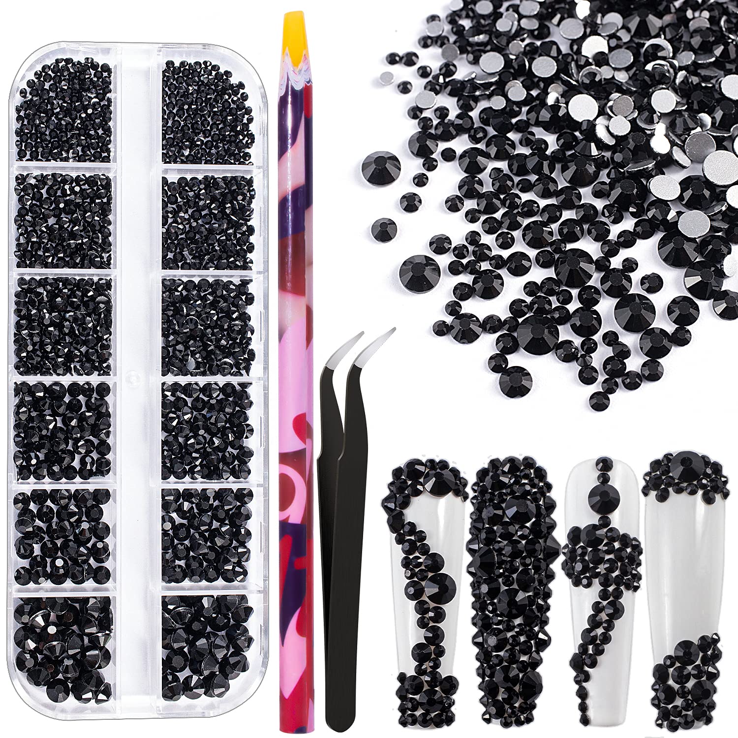 - ❤WHAT YOU WILL RECEIVE -- 1 Box of 6 Sizes Black Round Glass Nail Crystal Rhinestones Beads (Totally About 1720 PCS); 1 PCS Rhinestone Picker Pencil; 1 PCS Tweezer. The Well Equipped Rhinestone Set Is Suitable for Both Professional Nail Technician and Inexperienced Starter for Nail Art.