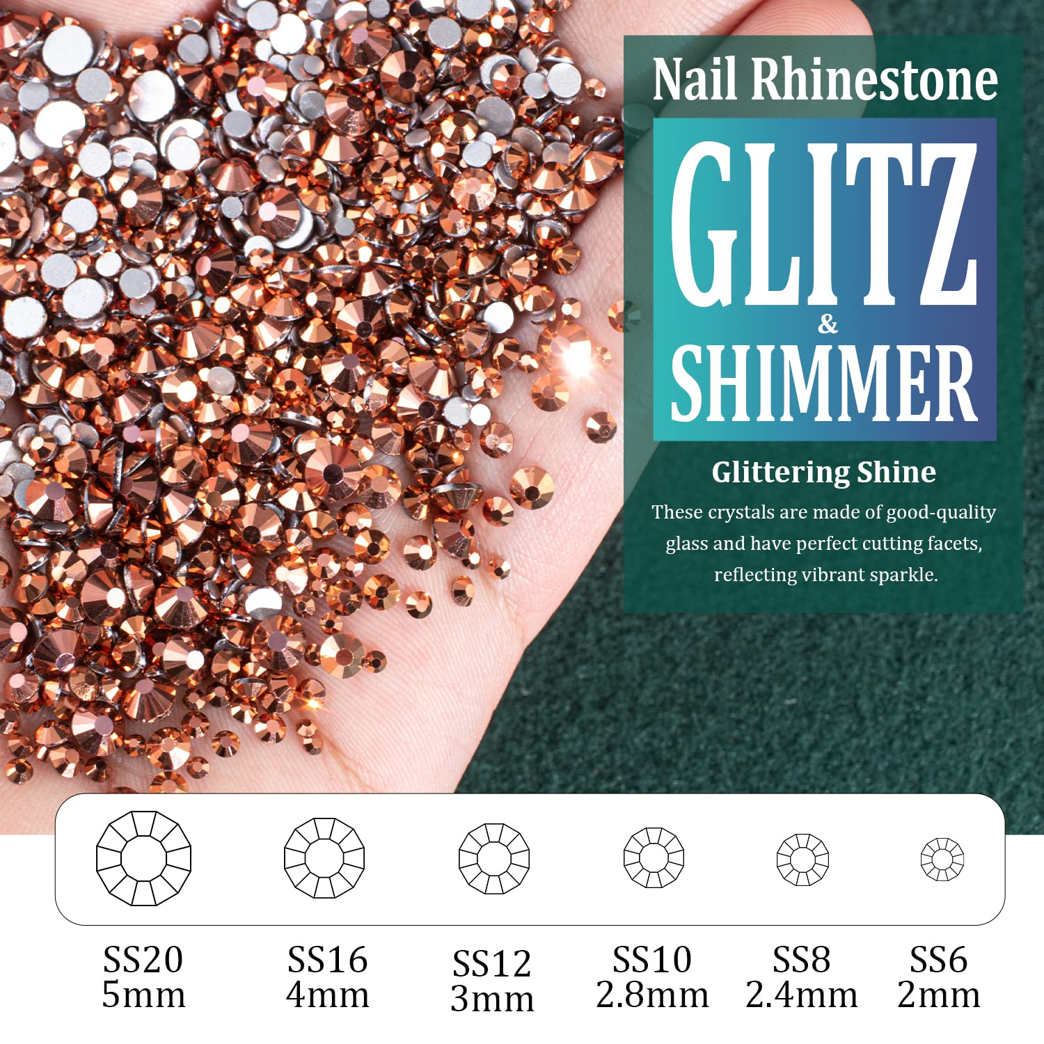 - ❤BRIGHT & VIBRANT SPARKLE -- The Nail Crystal Is Made of High Quality Glass And Has Delicate and Exquisite Shine. The Perfect Cutting Facets Endow Each Bead With Vibrant Glitz And Shimmer.