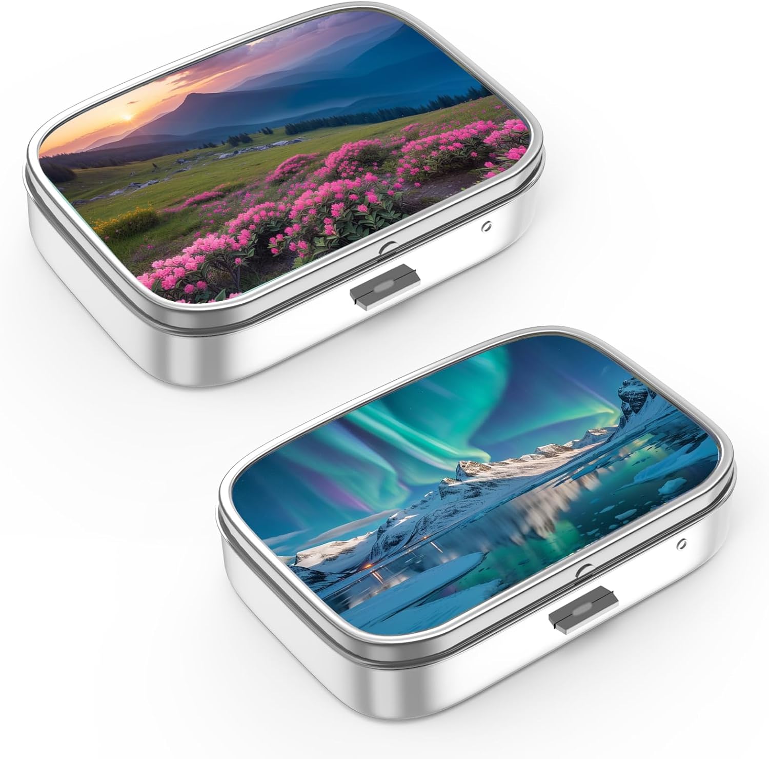 - Premium & Durable: Made of quality metal construction with plastic inside divider .Besides,Comparing with those plastic types, our pill organizers are made of premium rustproof and healthy metal, which makes them more sturdy and durable.There are two separate compartments, this portable pill box can make you use all day.Internal divider keeps your pills or vitamin organized.. A fine chrome pillbox with a high-gloss image, and reliable spring latch clasp to keep your meds safely inside
