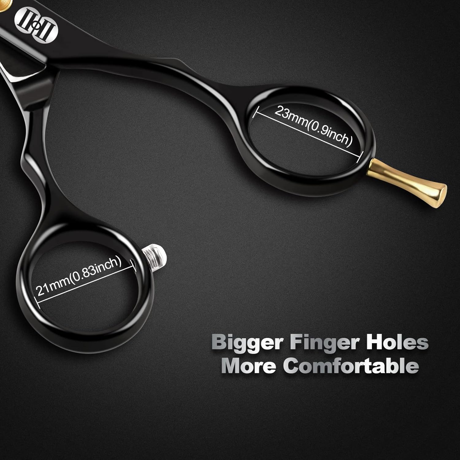 - ✨Simple Style & Ergonomic Design: ❶Right Left Handed Design - Also suit for lefties ❷Bigger Finger Holes - More comfortable, very ergonomic & reduces fatigue ❸High Rebound Muffler Design - Reduce the metallic noise and friction of hair scissors ❹Adjustable Screw Design - Adjust the tightness of the hair cutting scissors according to personal feeling.