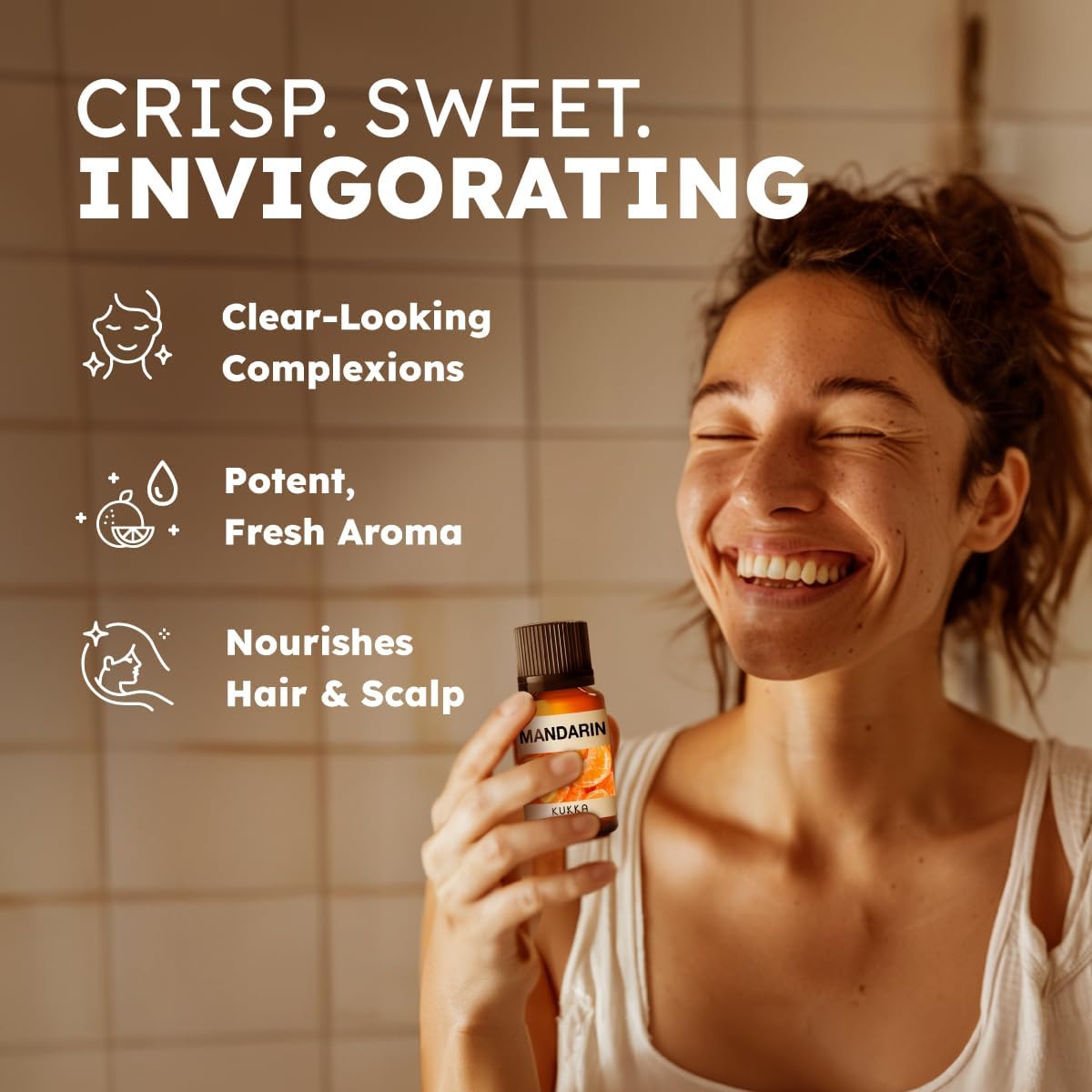 Kukka Mandarin Essential Oil for Diffuser Skin - 0.34 Fl Oz - Fresh & Citrusy Scent for Aromatherapy,Candle, Bath Bomb, DIY Soap Making Scents
