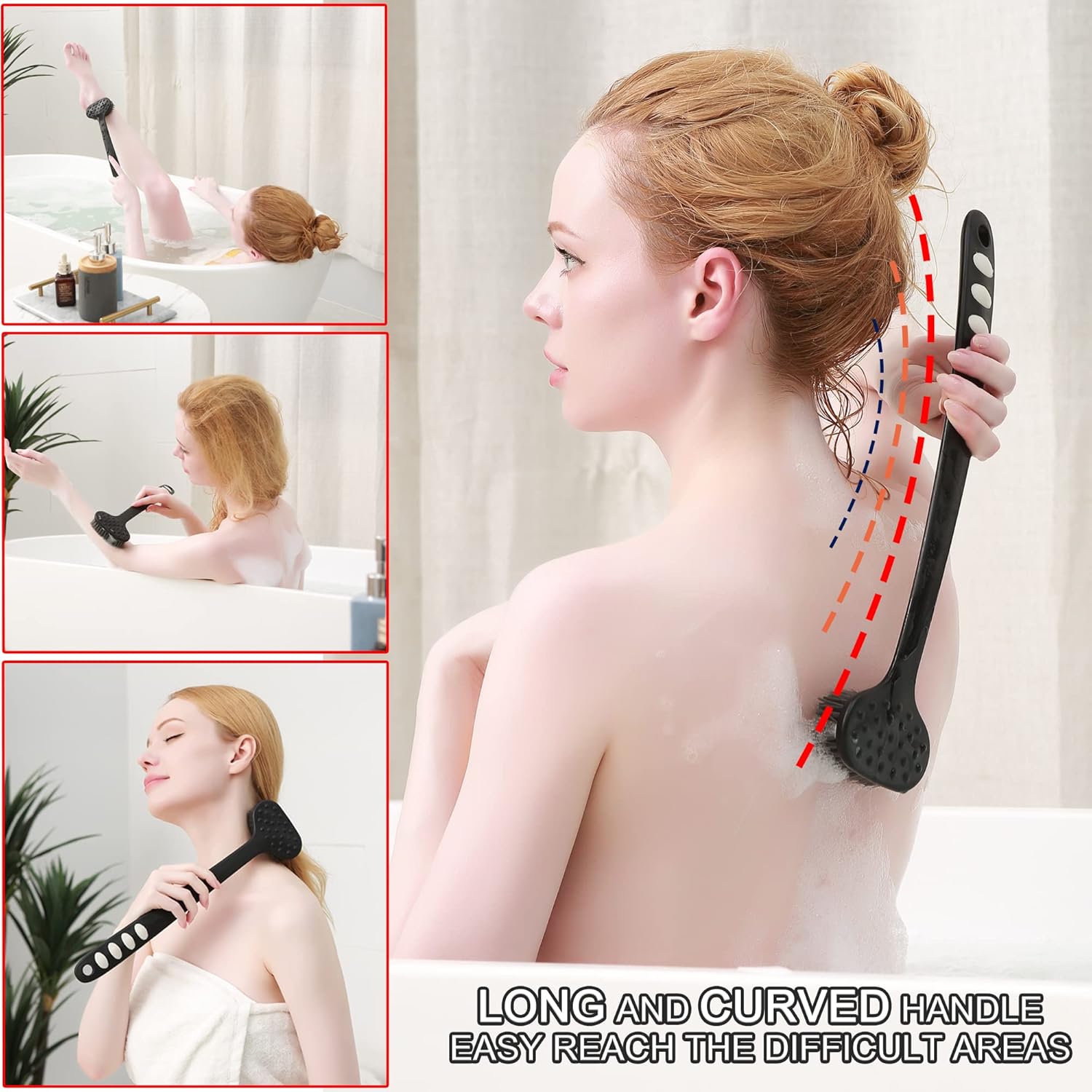 Bath Body Brush with Soft Bristles,Non-Slip Handle Built-in TPR Enhance Grip,15 in Long Handle Gentle Exfoliation Improve Skin's Health and Beauty for Women Men Shower Brushing (Black)
