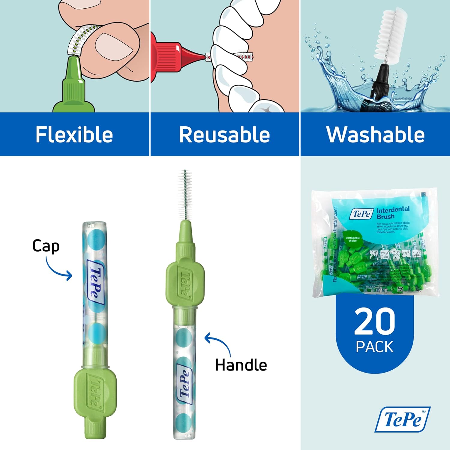 TePe Interdental Brush Original, Soft Dental Brush for Teeth Cleaning, Pack of 20, 0.8 mm, Large Gaps, Green, Size 5