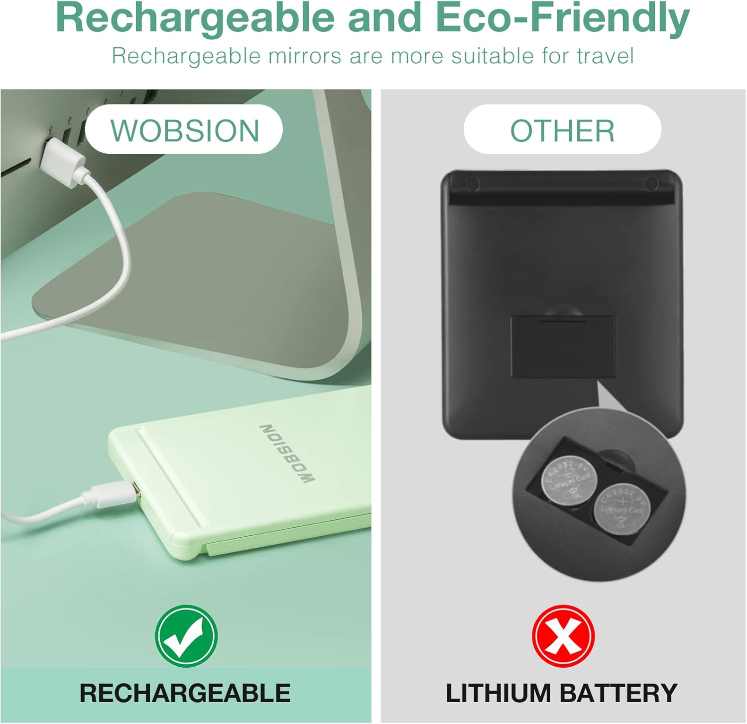 WOBSION Lighted Compact Mirror, Rechargeable Travel Makeup Mirror with Light,1x/3x Magnifying,300°Flip Folding Portable Mirror,Dimmable,Gifts for Girls