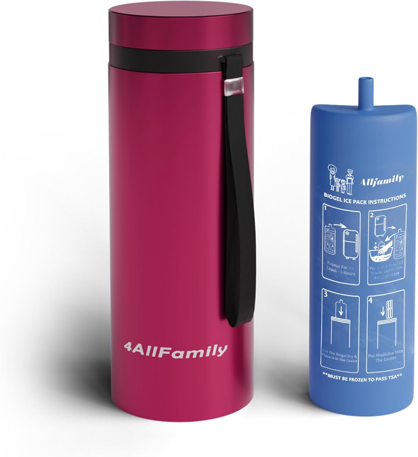 4AllFamily Nomad Insulin Travel Case Cooler – 52H Non-Electric Insulin Cooler Travel Case TSA Approved with Lightweight Design – Air Traveling Friendly, Reusable Big Red Thermo for Medications