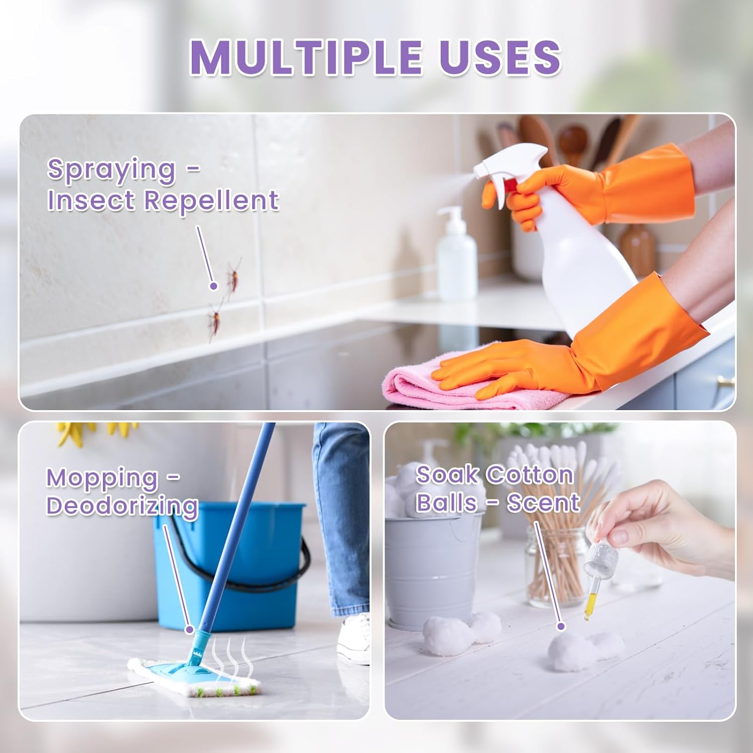 - Versatile Use: Our lavender essential oil can be used in a wide variety of ways, such as making a spray to repel insects, adding drops of lavender essential oil to cotton balls or towels as a scent, and cleaning and de-miting mites