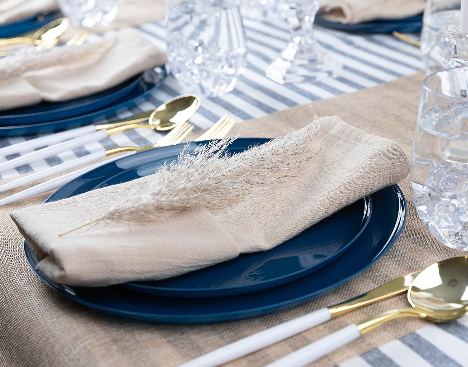 - [30 Pack 6.3''] Dark Blue Plastic Party Plates Edge Collection Premium heavyweight Elegant Disposable Tableware Dishes