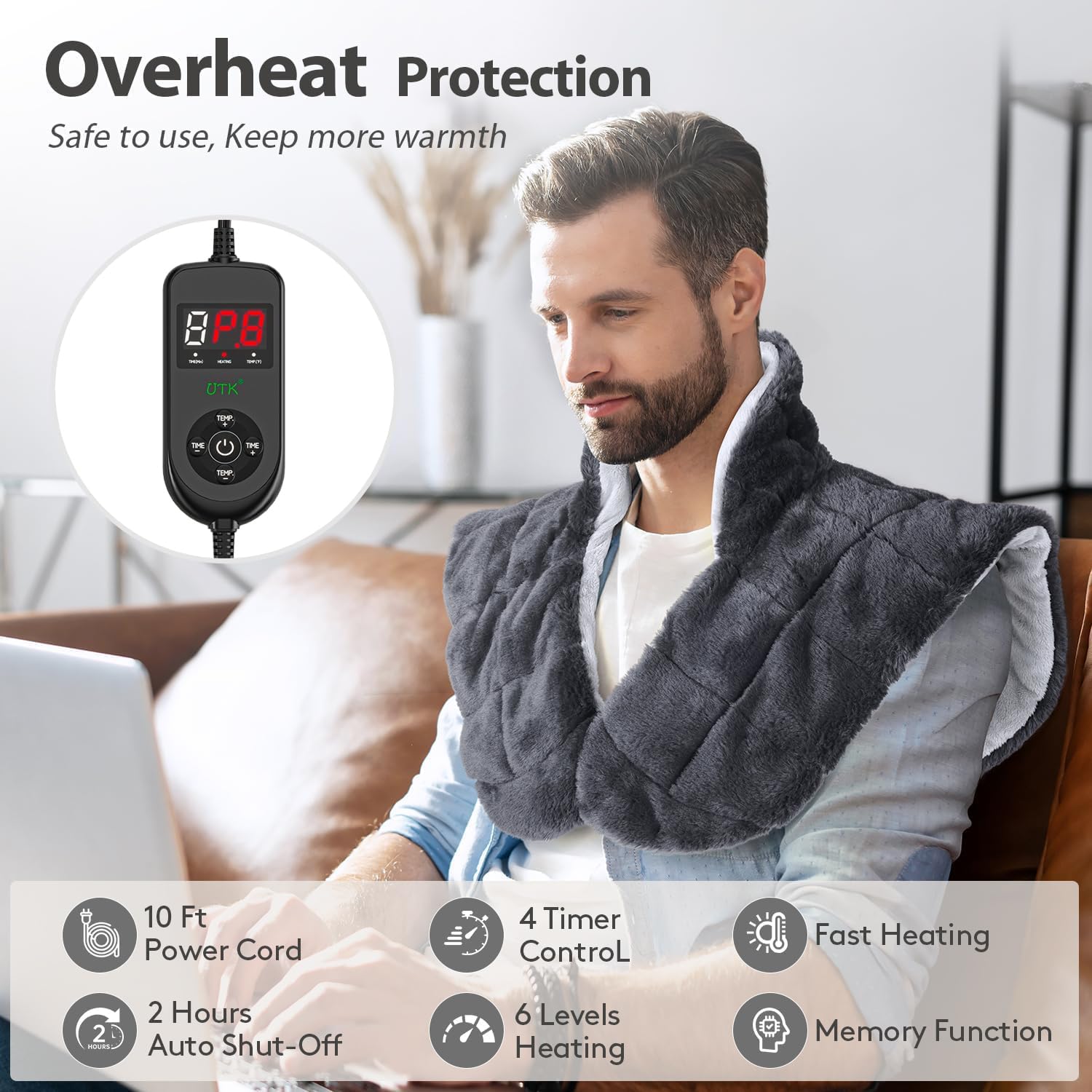 UTK Weighted Heating Pad for Neck and Shoulders and Back, 30s Fast Heat,6X Deeper Pain Relief, Faux Rabbit Fur Fabric, 8 Heat Settings Max 159℉, 4H Auto Off, Memory Function, 24"x 20", Gifts for Women