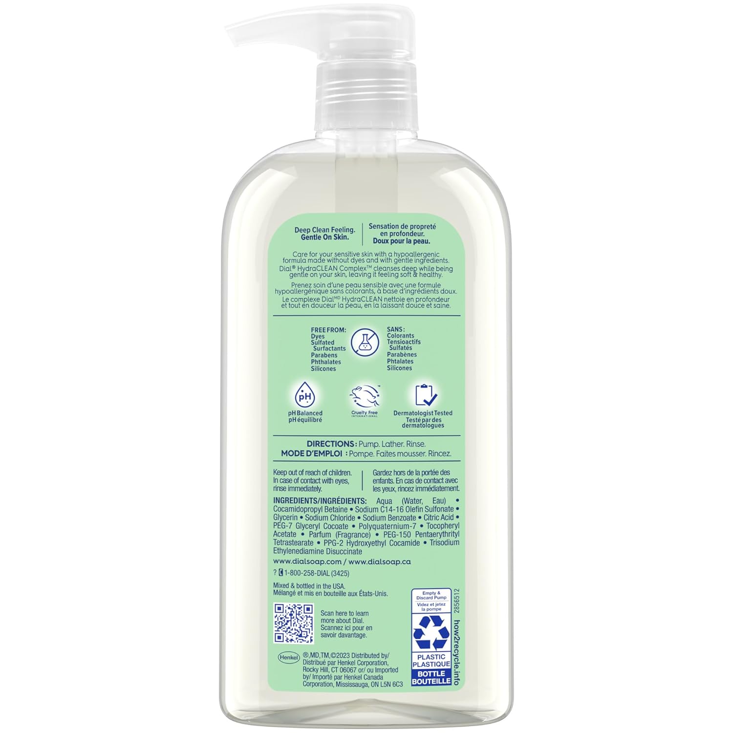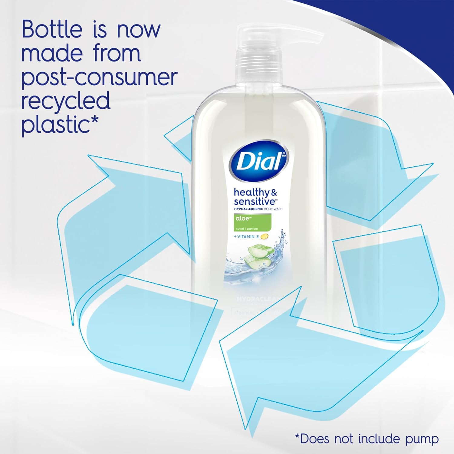 - CLEANSES DEEP: Care for your sensitive skin with a hypoallergenic formula made without dyes and with gentle ingredients. This Dial Body Wash is tough on dirt and impurities yet gentle, and is for all skin types. 23 Fl Oz bottle (Pack of 3) in refreshing Aloe scent.