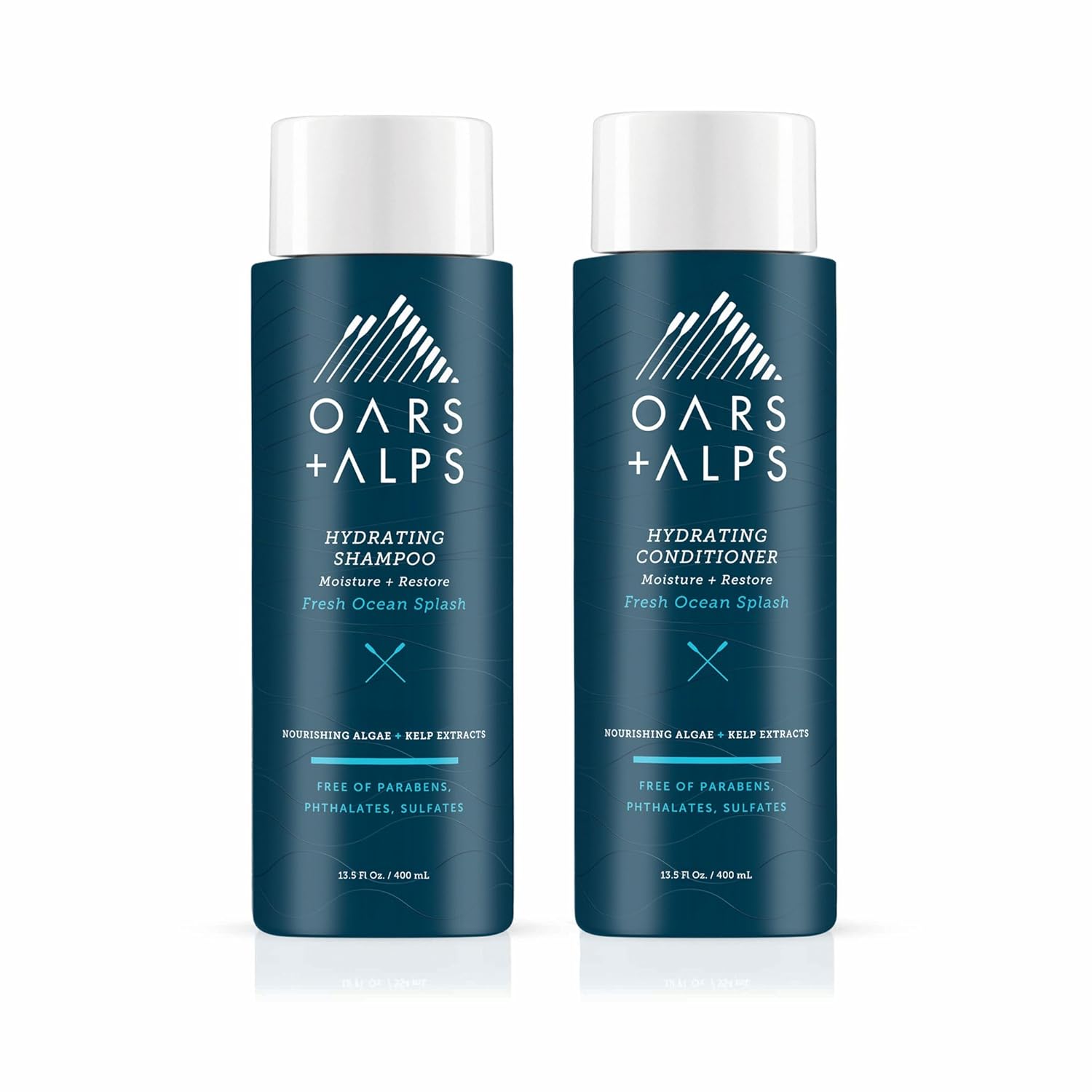 Oars + Alps Men's Sulfate Free Hair Shampoo and Conditioner Set, Infused with Kelp & Algae Extracts, Nourishing & Moisturizing, Fresh Ocean Splash Scent, 2 Pack, 12 Fl Oz Each