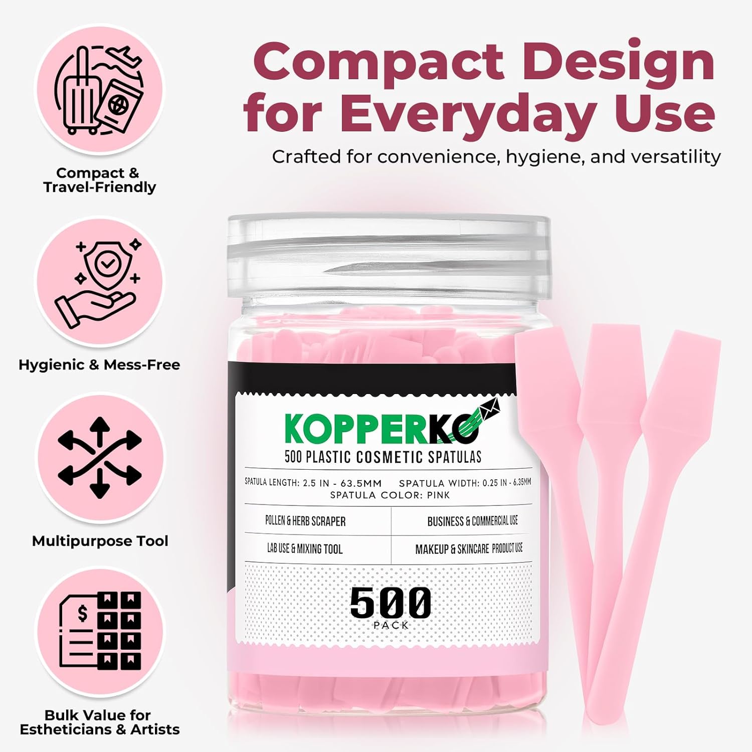 - Clean Out Your Containers: Maximize product use with our 500 pack of 0.25"x2.5" disposable small skincare spatulas. Easily extract creams, lotions, or makeup from containers, even in tight spaces, without getting product under your nails