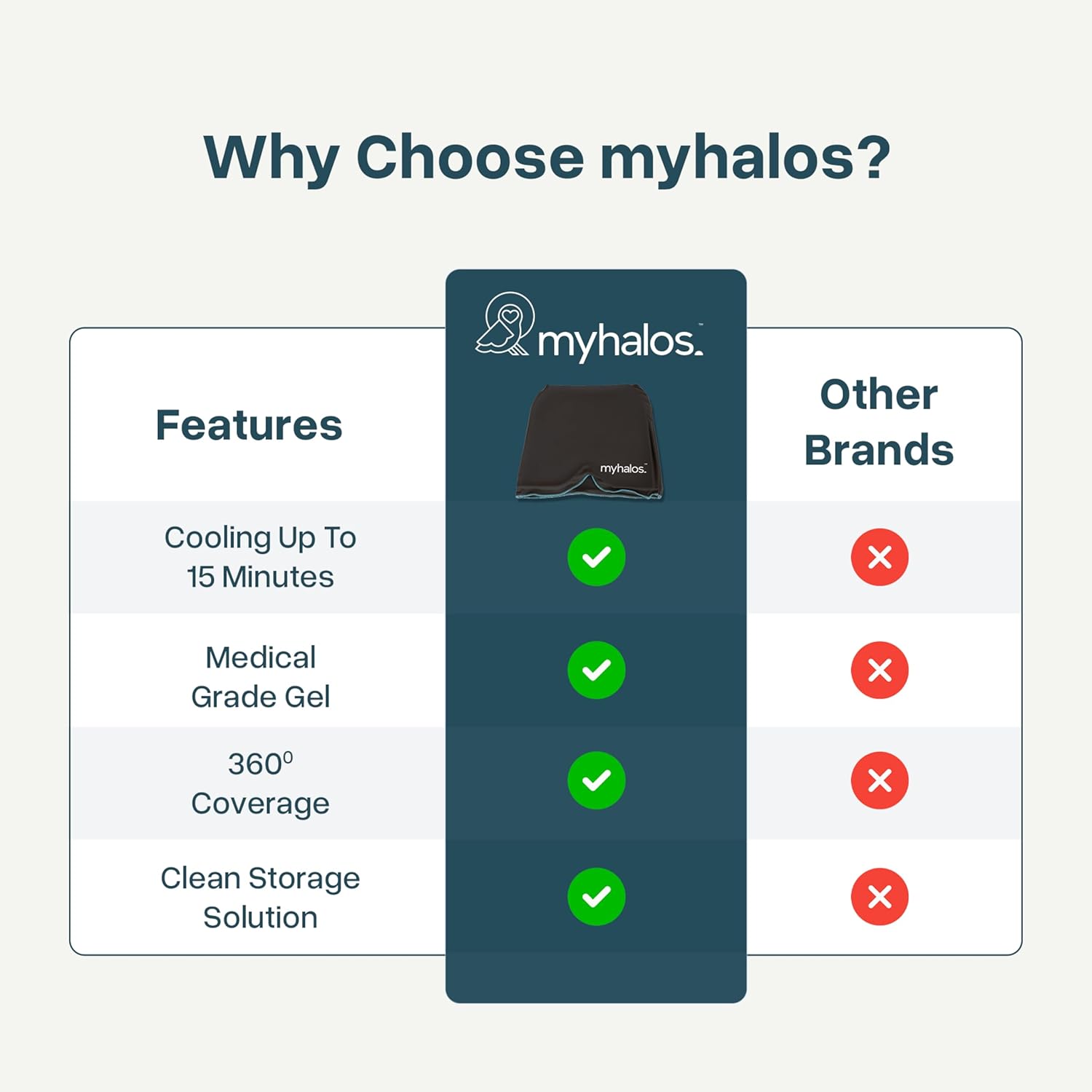 - { Odor-Free Storage Pouch } Every MyHalos headache wrap comes with a convenient resealable pouch to keep your cold headache wrap clean, dry, and odor-free in the freezer/fridge. Now you'll always have your hat ice pack at hand whenever you need a cooling migraine mask or headache ice pack head wrap.