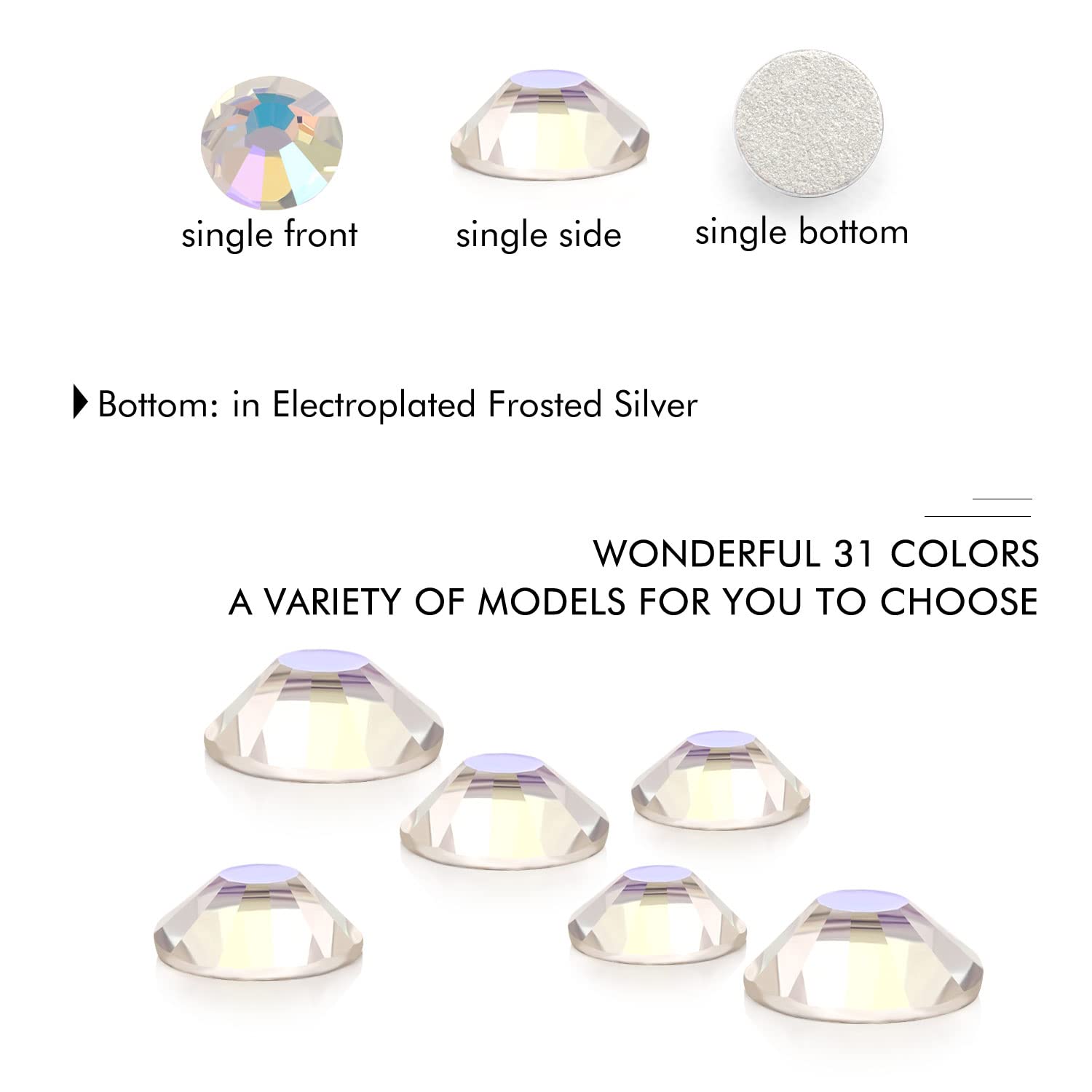 - Different Sizes Available:These rhinestones for crafts come in a wide range of sizes (1.6mm, 2mm, 2.4mm, 2.8mm, 3mm, 4mm, 4.8mm) to suit your different needs