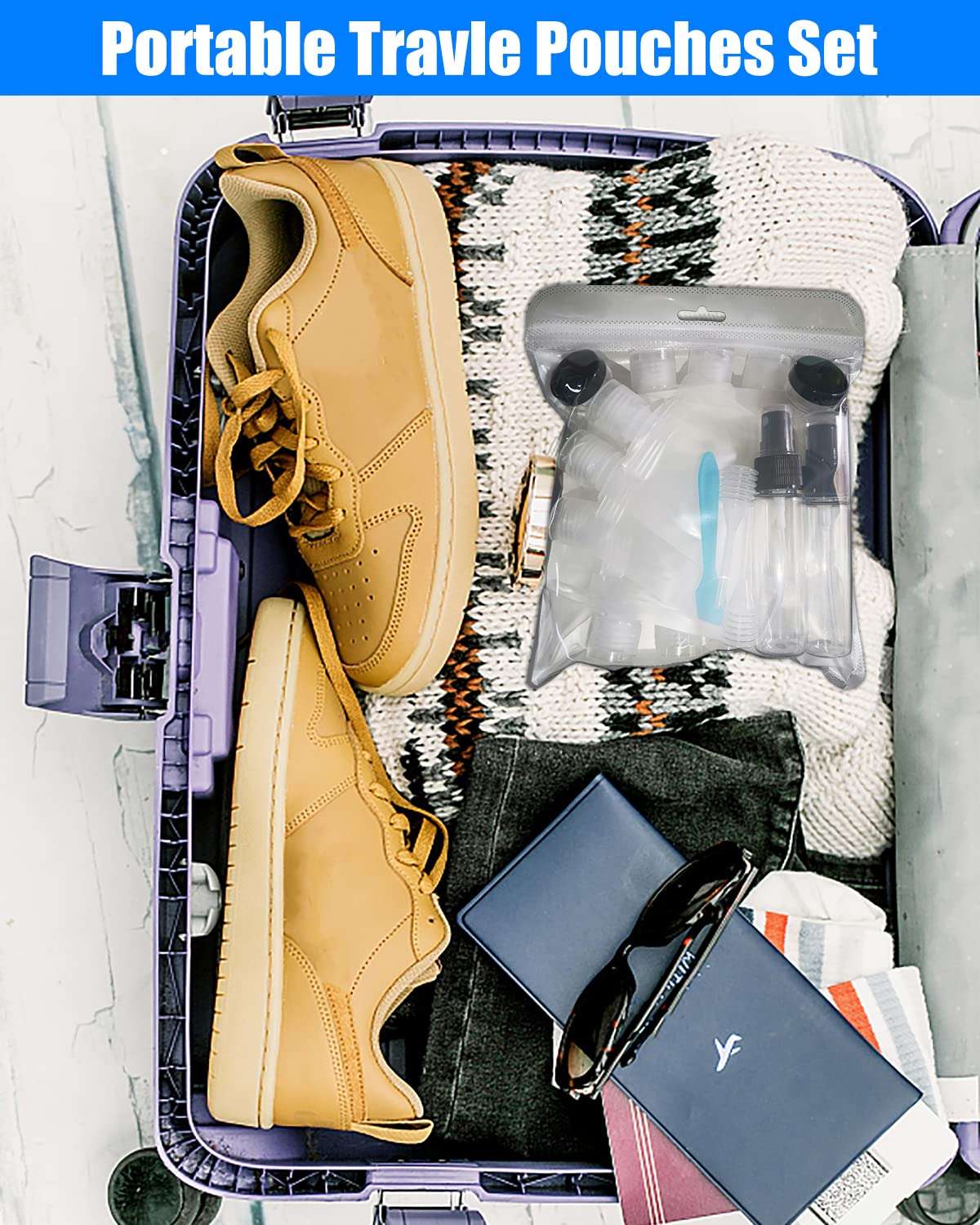 - 【MUST-HAVE Travel Sets】These travel containers for toiletries are compact and lightweight for easy packing into your purse, carry-on, backpack or suitcase. Our travel-size poucehs are reusable, leak-proof, durable and dishwasher safe.