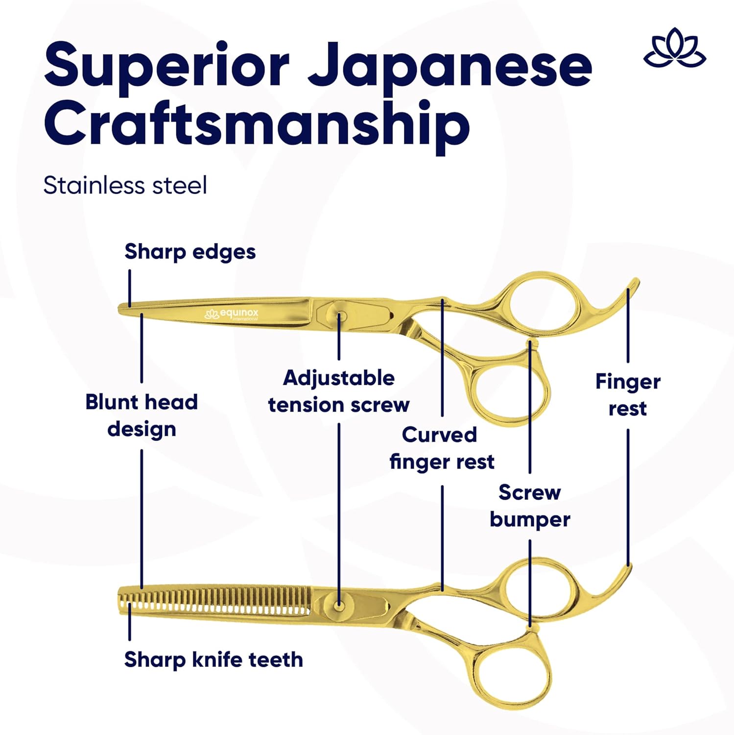 Equinox Professional Barber Scissors Set - Includes Scissors & Thinning Shears for Hair Cutting & Grooming, Japanese Stainless Steel Barber Accessories