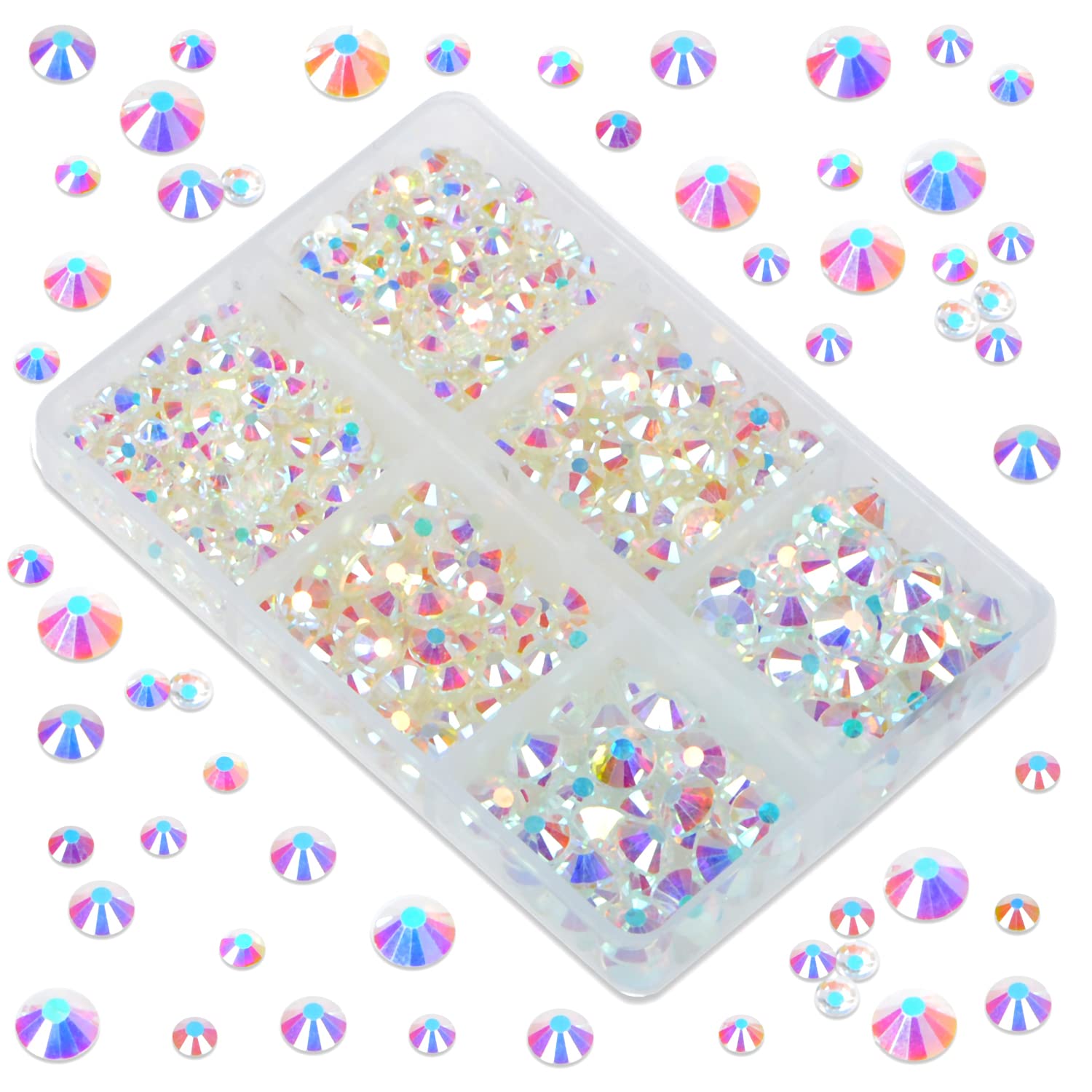 LPBeads 6000 Pieces Paradise Shine Non Hotfix Rhinestones 6 Sizes Round Crystal Glass Flat Back Rhinestones with Tweezers and Picking Pen for Nail Art Crafts Bags DIY
