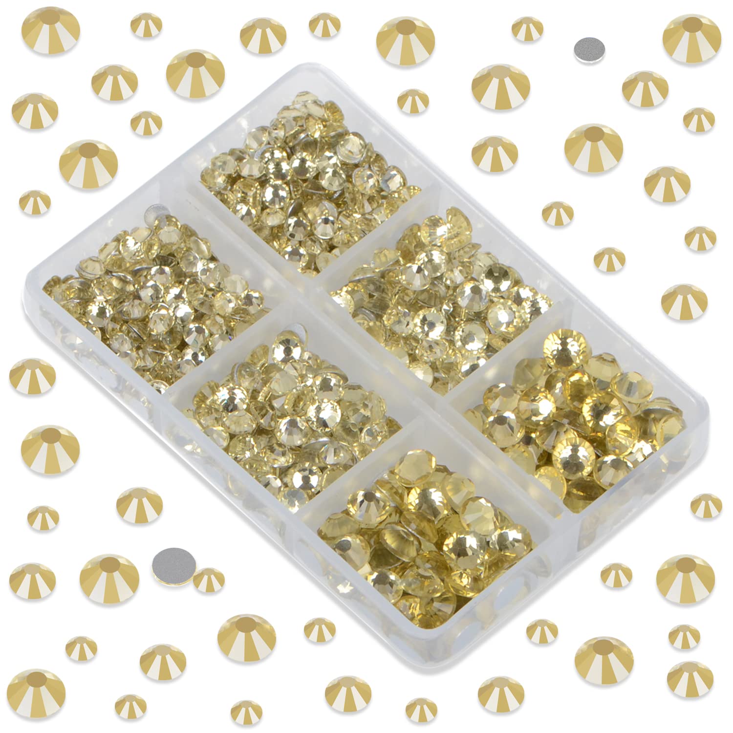 LPBeads 6000 Pieces Jonquil Non Hotfix Rhinestones 6 Sizes Round Crystal Glass Flat Back Rhinestones with Tweezers and Picking Pen for Nail Art Crafts Clothes Bags DIY