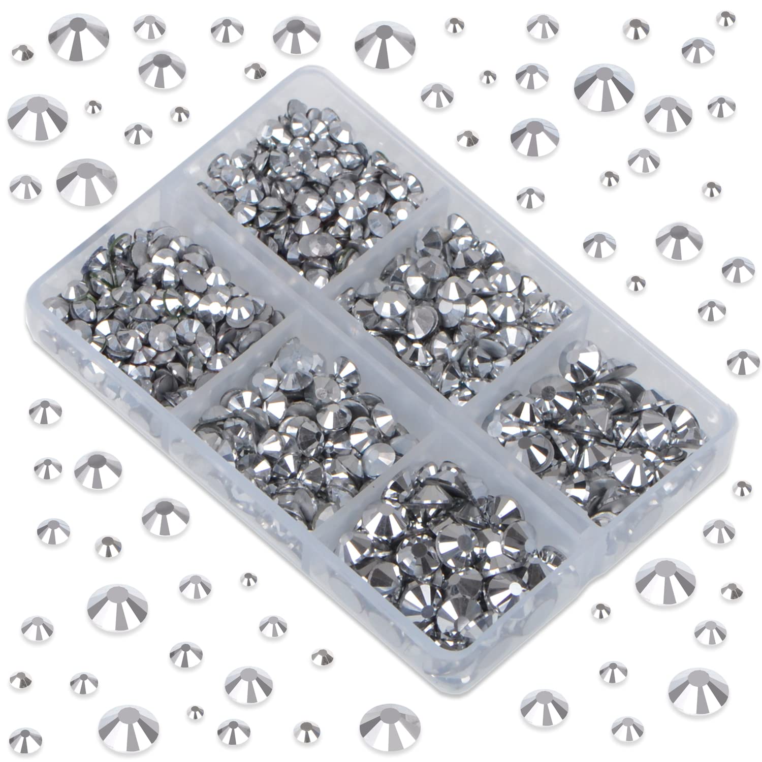LPBeads 6000 Pieces Metallic Silver Non Hotfix Rhinestones 6 Sizes Round Crystal Glass Flat Back Rhinestones with Tweezers and Picking Pen for Nail Art Crafts Clothes Bags DIY