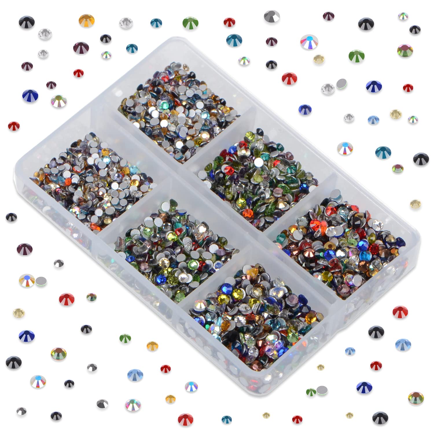 LPBeads 6000 Pieces Mixed Color Non Hotfix Rhinestones 6 Sizes Round Crystal Glass Flat Back Rhinestones with Tweezers and Picking Pen for Nail Art Crafts Clothes Bags DIY
