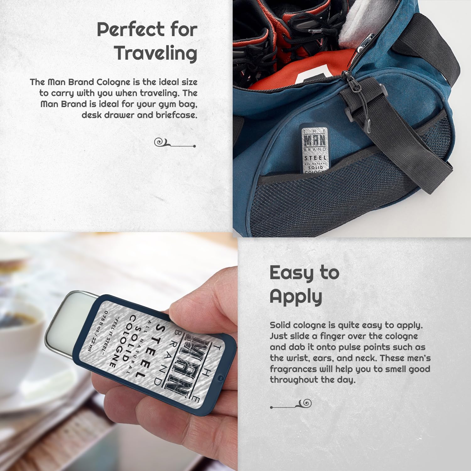 Steel Solid Cologne 0.75 oz - Natural Men's Cologne - Redefined men's fragrance Wax Cologne, Steel Travel Size Cologne for men - Solid Cologne Men's Steel Scent (3/4 Ounce (Pack of 1), Steel)