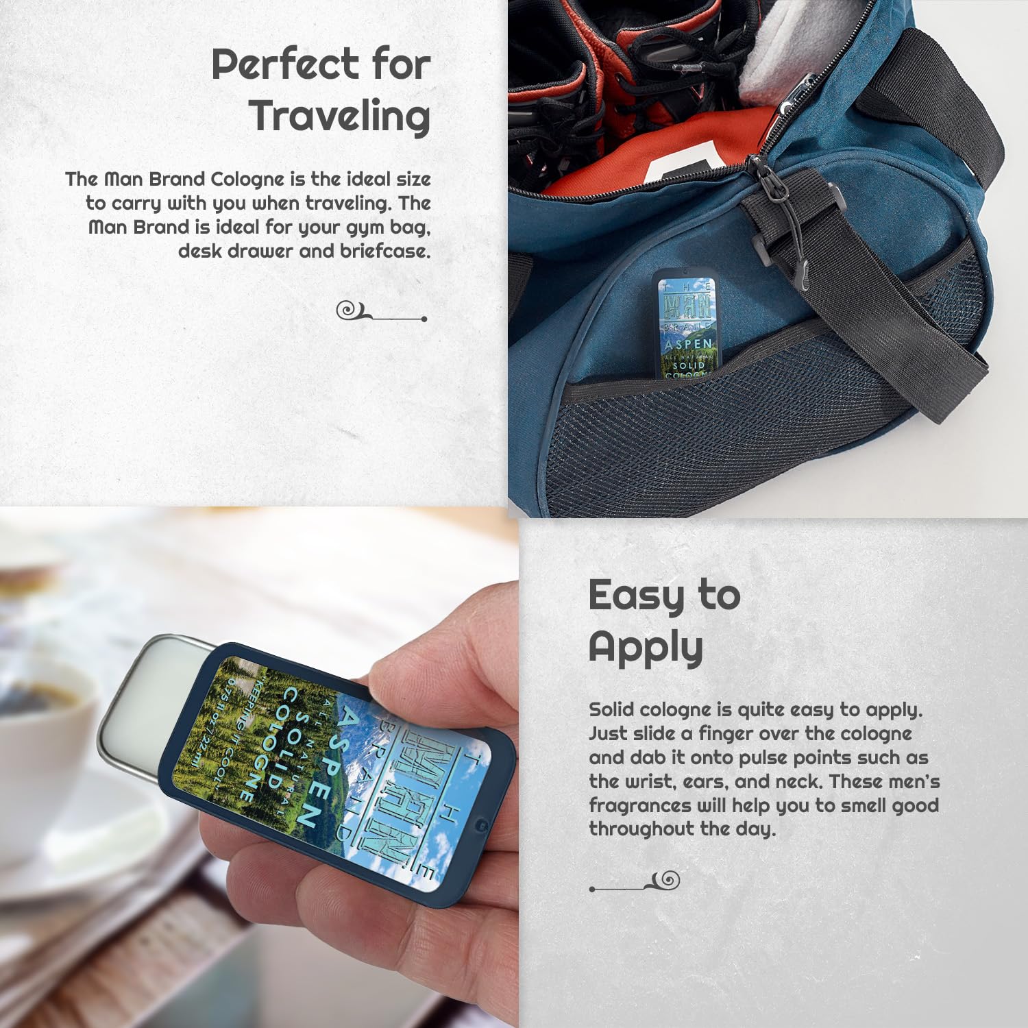 - Boosted Confidence and Masculine Appeal: Solid men’s cologne isn't just about smelling good; it's about feeling confident with our carefully curated fragrance for men.