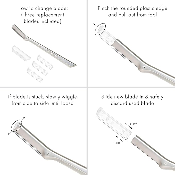 - Provides easy removal of peach fuzz and gentle exfoliation of dull, dead skin. Stainless steel blades are durable and easy to clean.