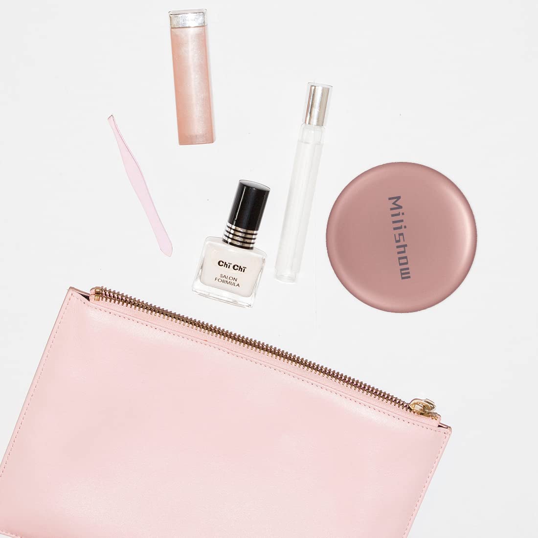 - 【LED Adjustable Brightness】: This compact mirror is easy to adjust the brightness to meet any environment for you. The ring light is soft and close to natural daylight to be ready for your flawless makeup.