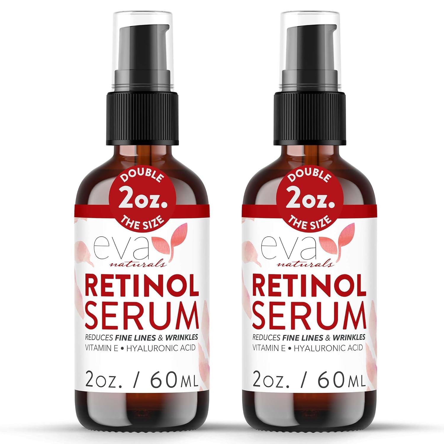 Retinol Serum by Eva Naturals - 2.5% Retinol Serum for Face with Hyaluronic Acid, Vitamin E & Organic Aloe - Retinol Face Serum that Reduce Wrinkles, Fine Lines & Dark Spots - Anti Aging Serum, 2 Pack