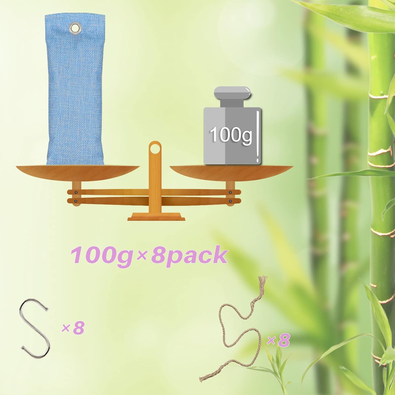 Charcoal Bags Odor Absorber (8x100g) Activated Bamboo Charcoal Air Purifying Bags Charcoal Odor Eliminating Bags for Home & Car Shoes, Closet, Pet -8 PACK