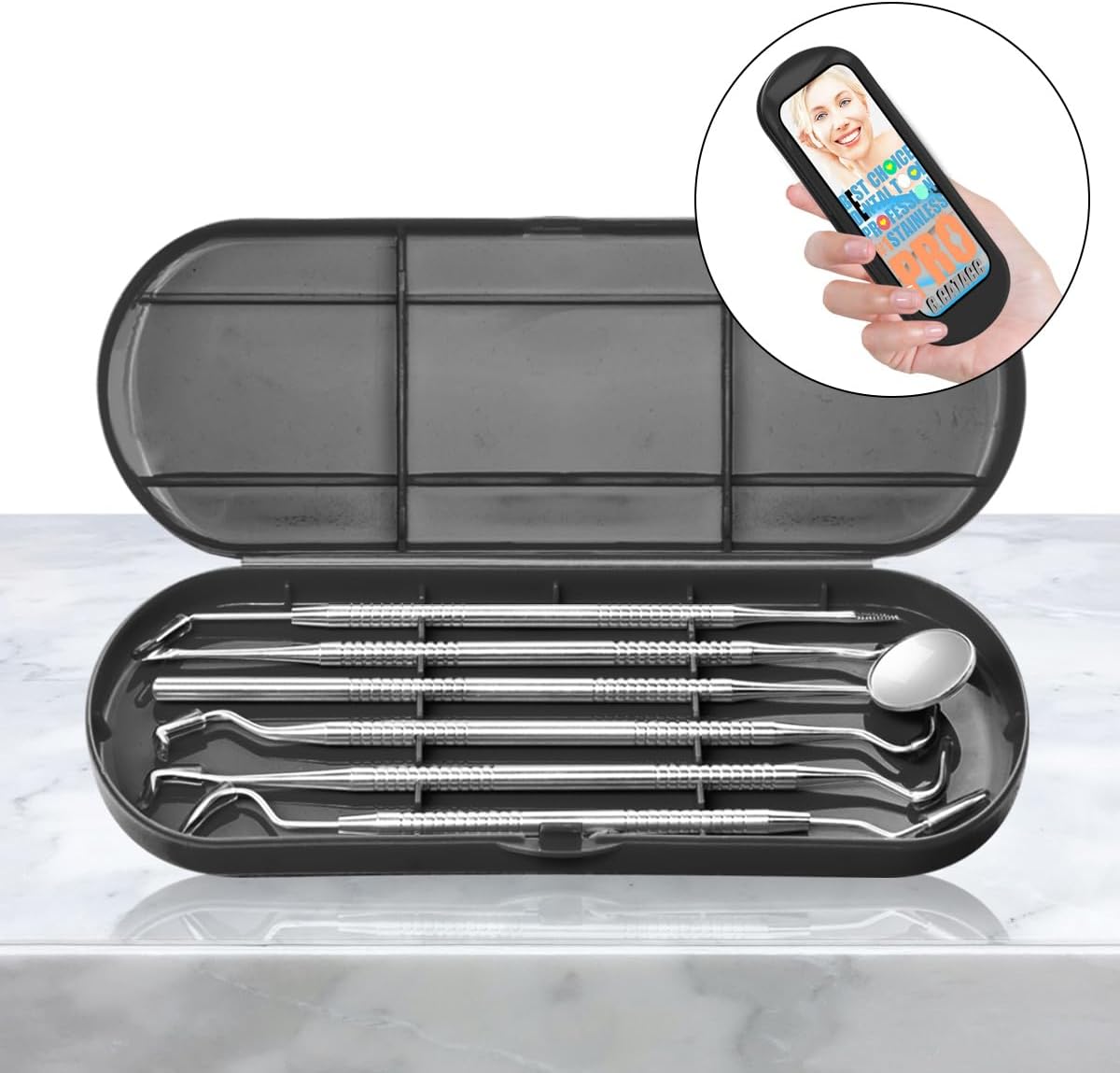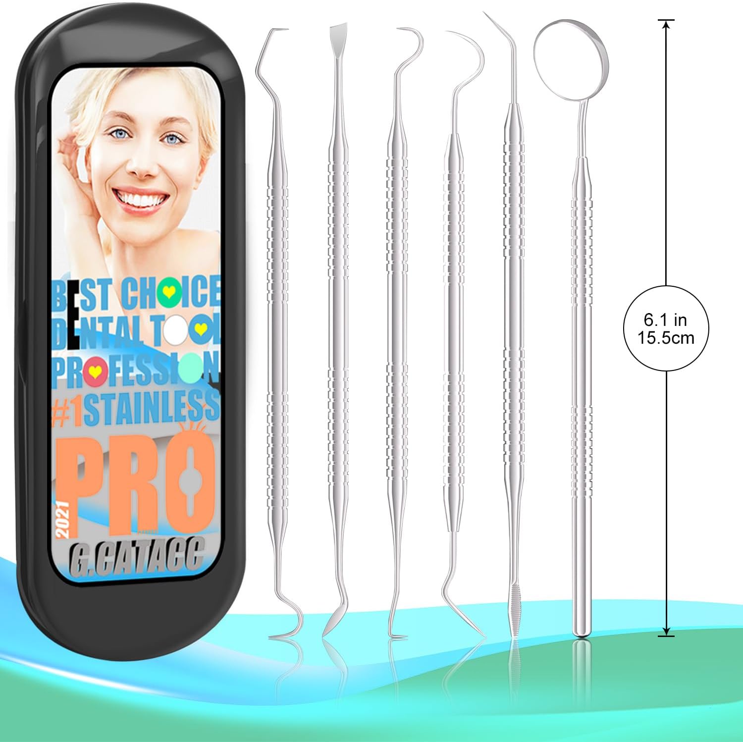 G.CATACC Dental Tools, Metal Dental Pick Teeth Cleaning Tools for Home Use, Stainless Steel Oral Care Hygiene Kit with Tooth Scraper Plaque Tartar Remover - with Case