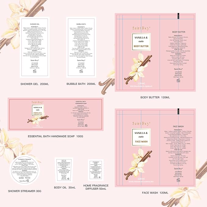 Bath and Body Gift Baskets for Women, 12 Pcs Vanilla Oat Spa Gifts for Women. Bath Gift Set Enriched Shea Butter. Home Spa with Shower Gel, Body Oil, Saint Roy Gifts for Mom