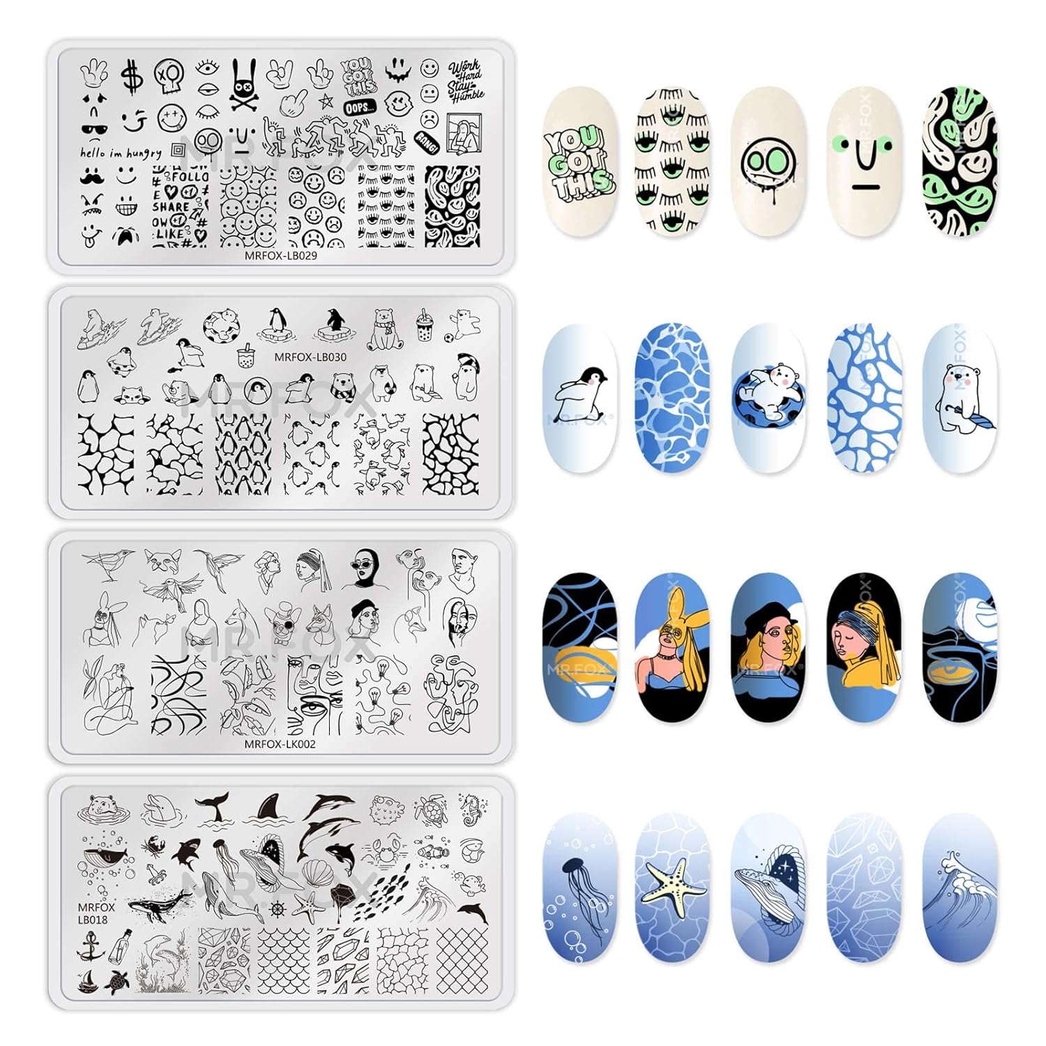 MR.FOX Nail Stamping Plate Set, 8Pcs Nail Art Stamp Kit Templates for Women with Plenty of Images