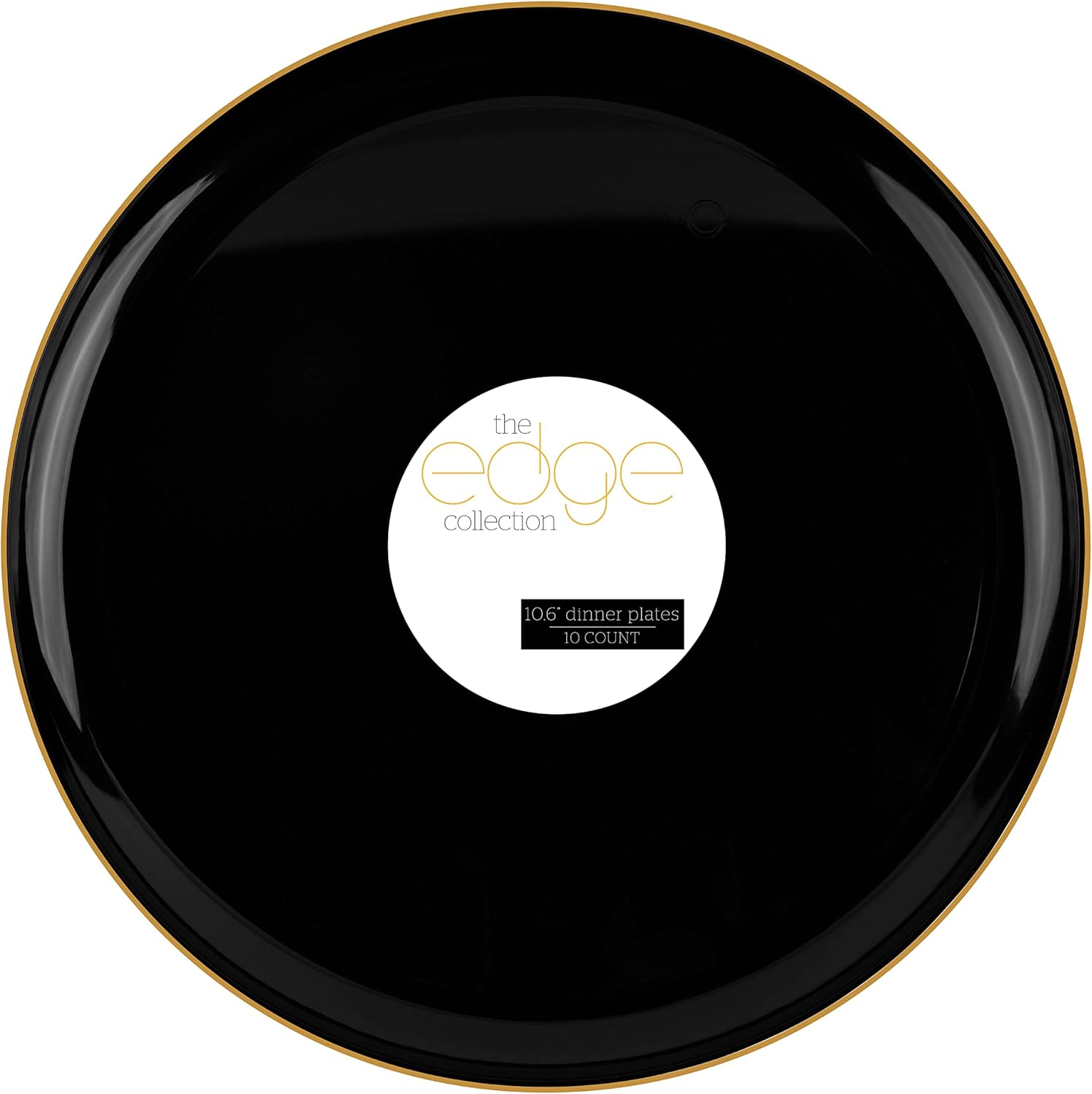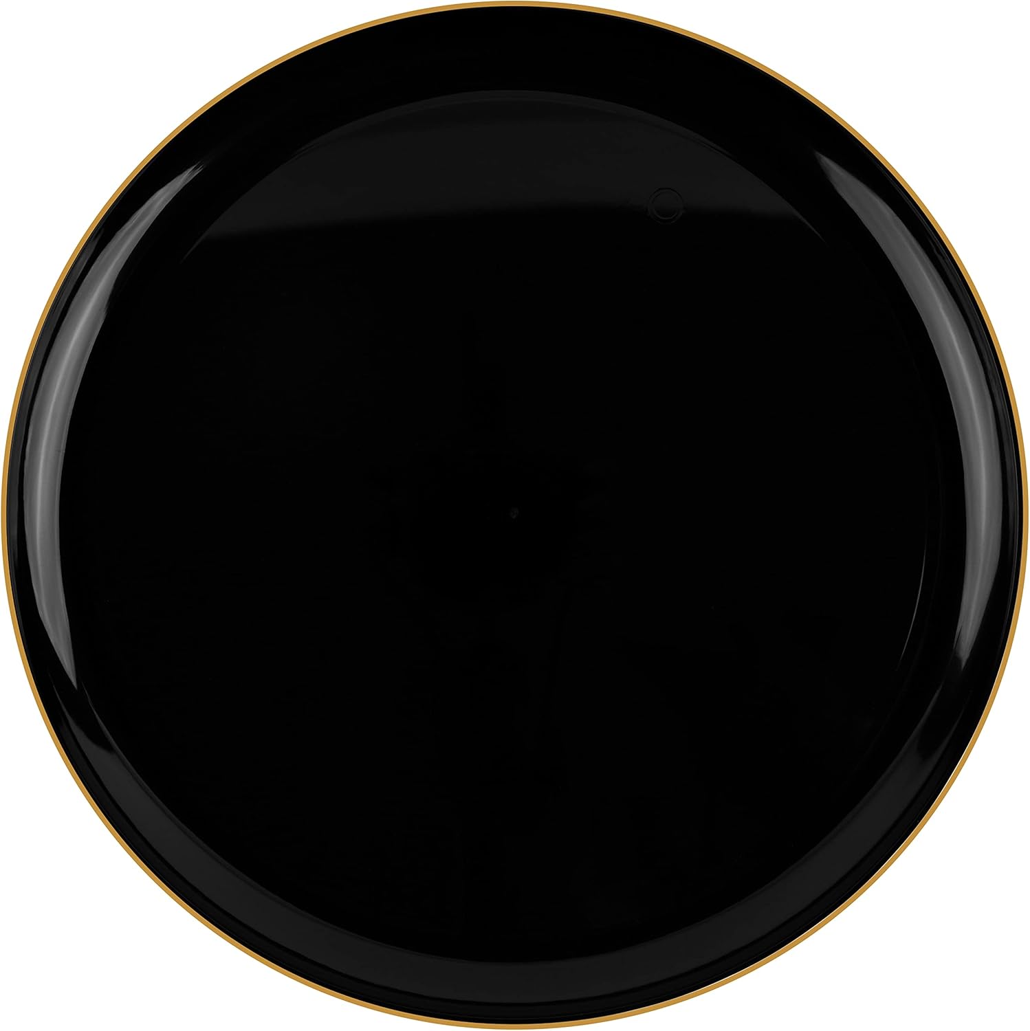 PLASTICPRO [30 Pack 10.6 Plastic Party Plates Edge Collection Black with Gold Rim Premium heavyweight Elegant Disposable Tableware Dishes (Black With Gold Rim,