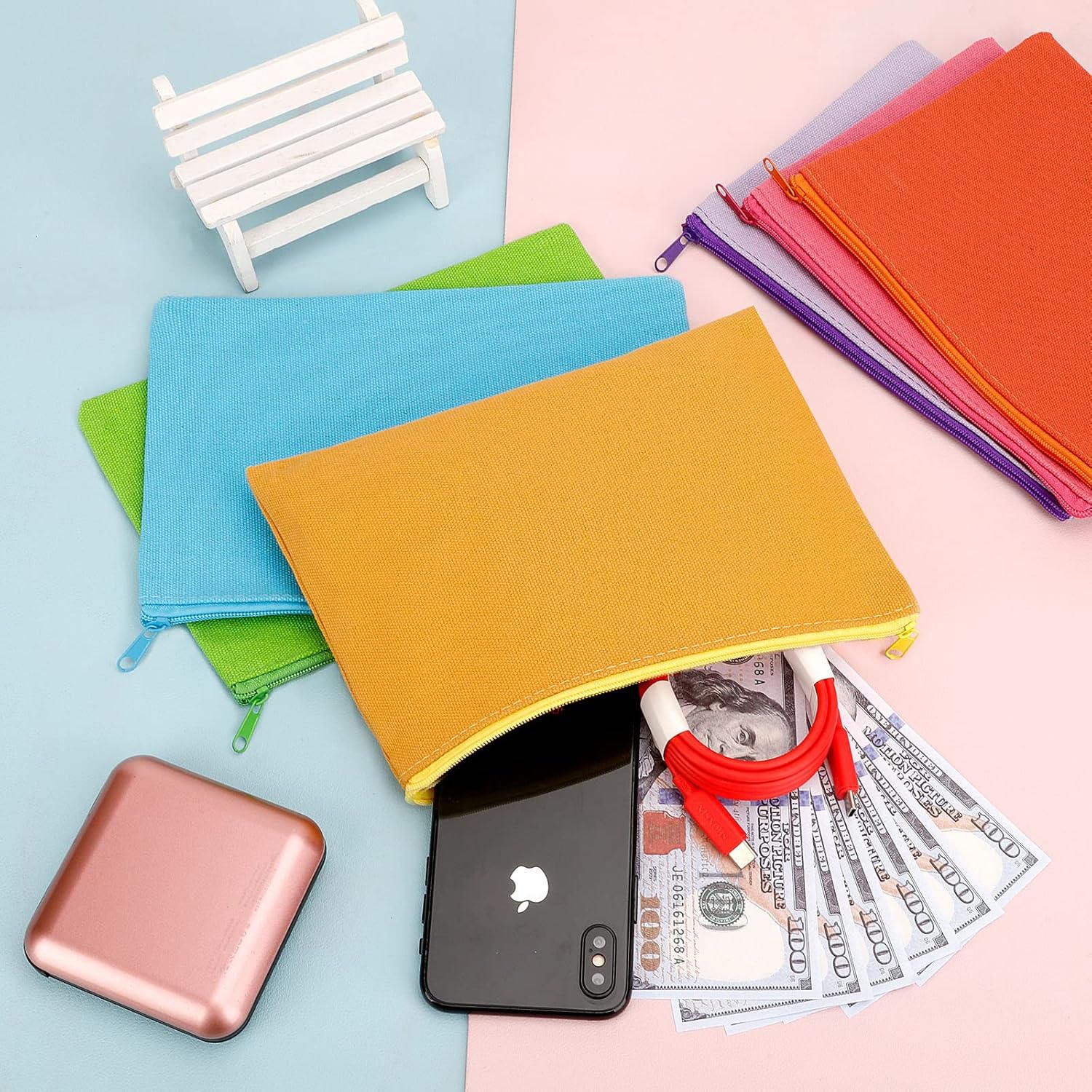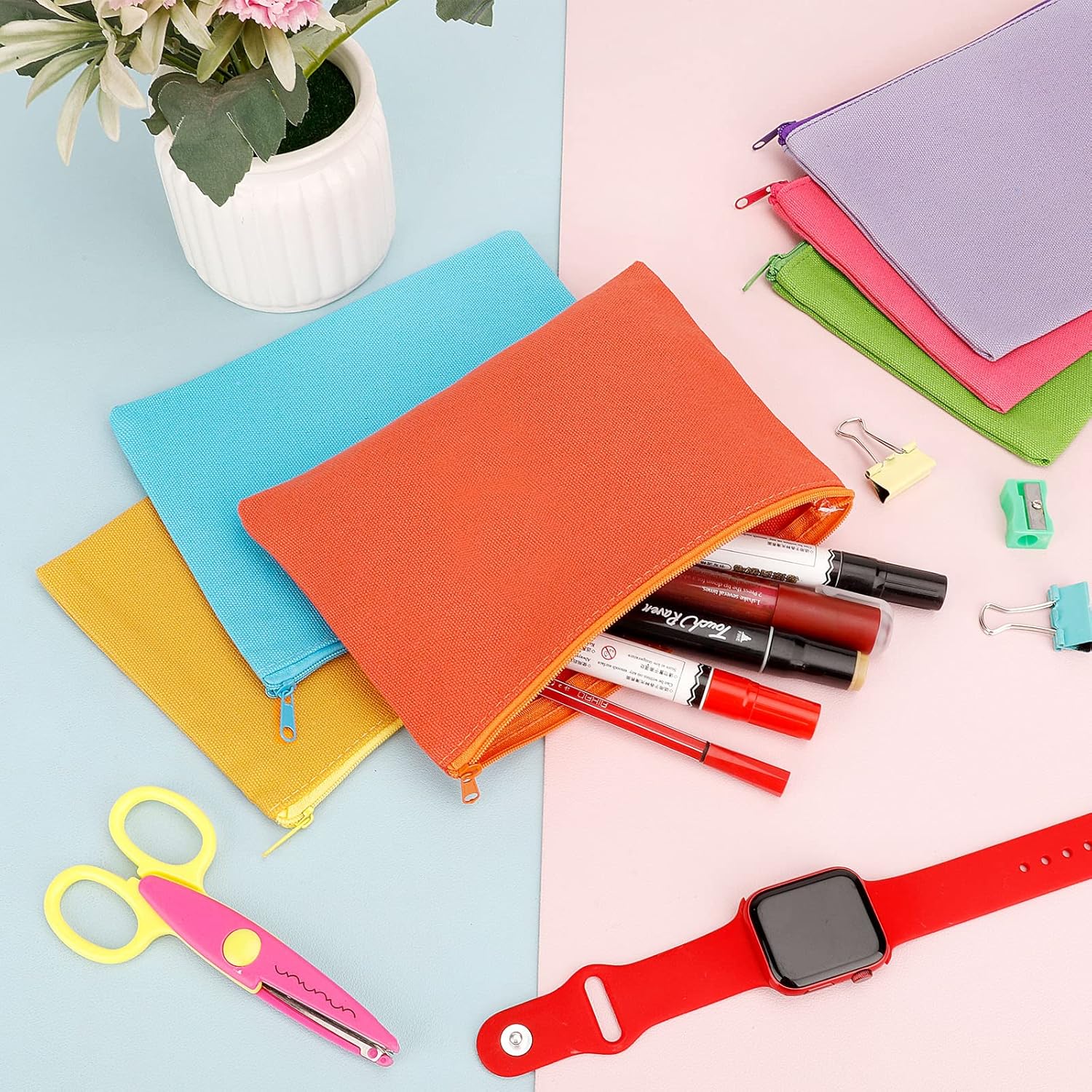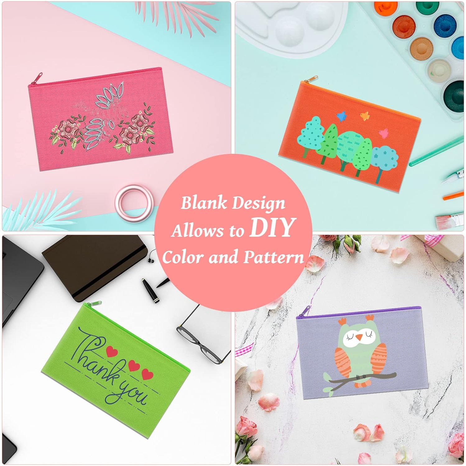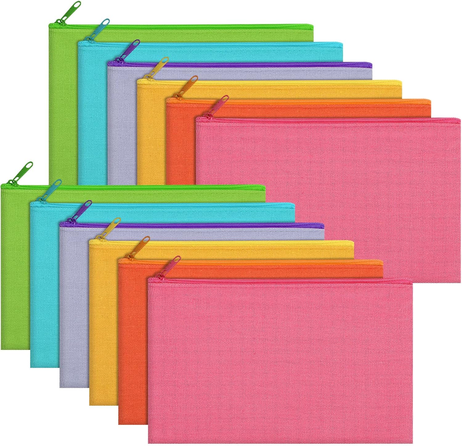 12 Pieces Cotton Canvas Makeup Bag, Multipurpose Cosmetic Bag with Zipper Travel Toiletry Pouch, Blank DIY Craft Bag (Multicolored B, S)